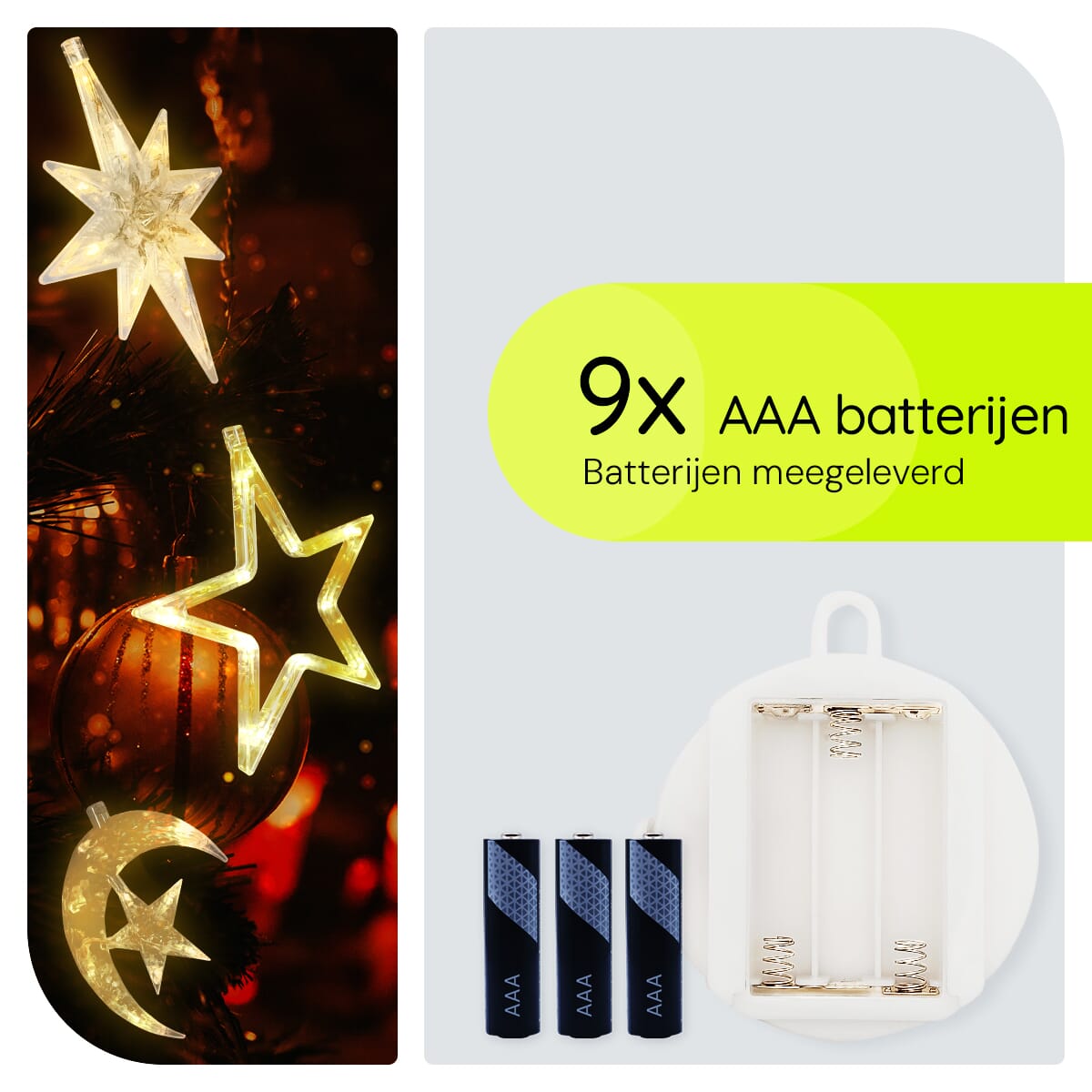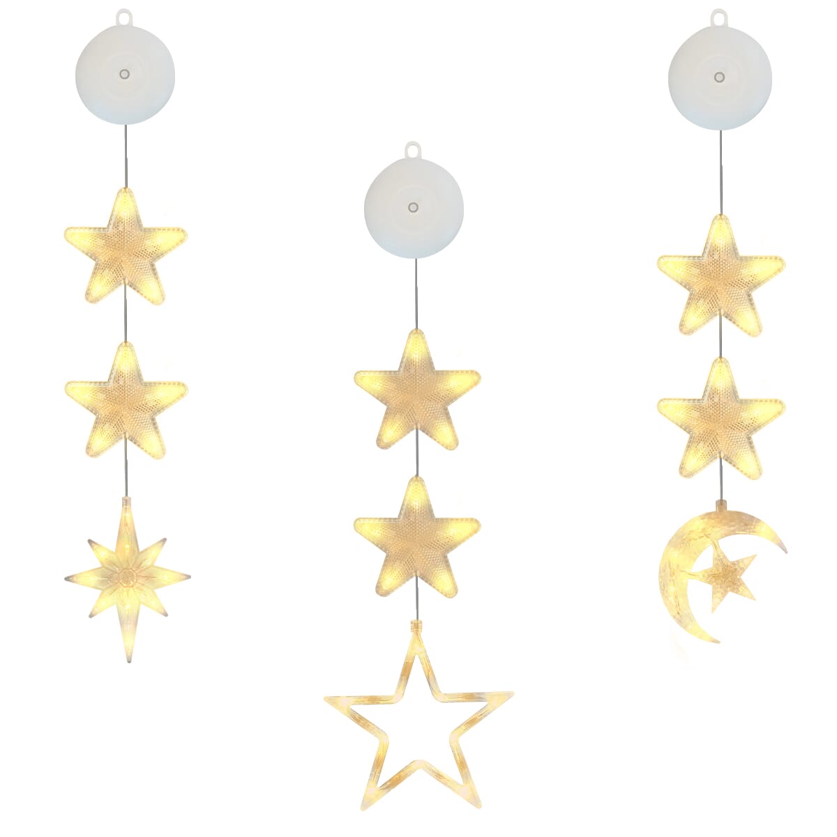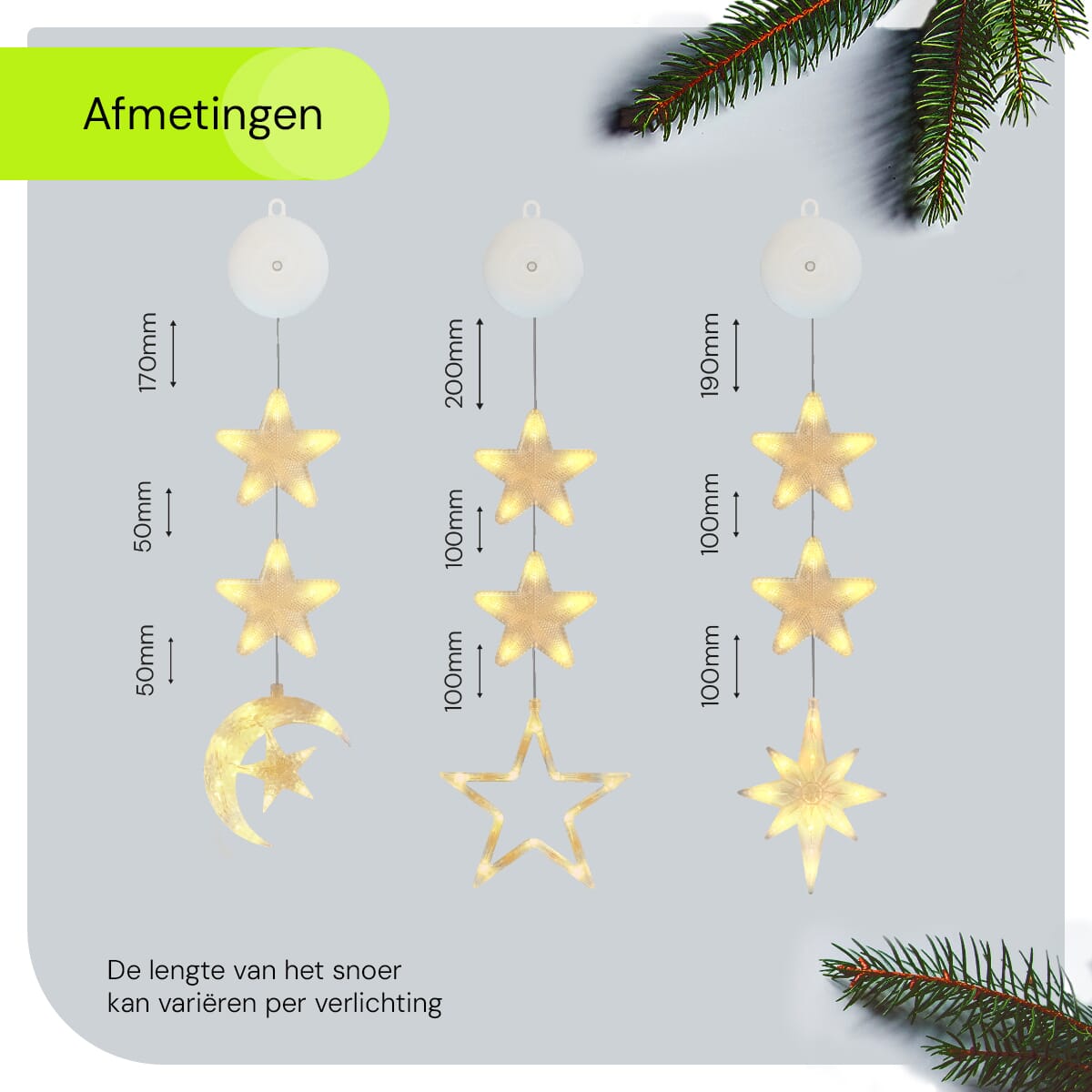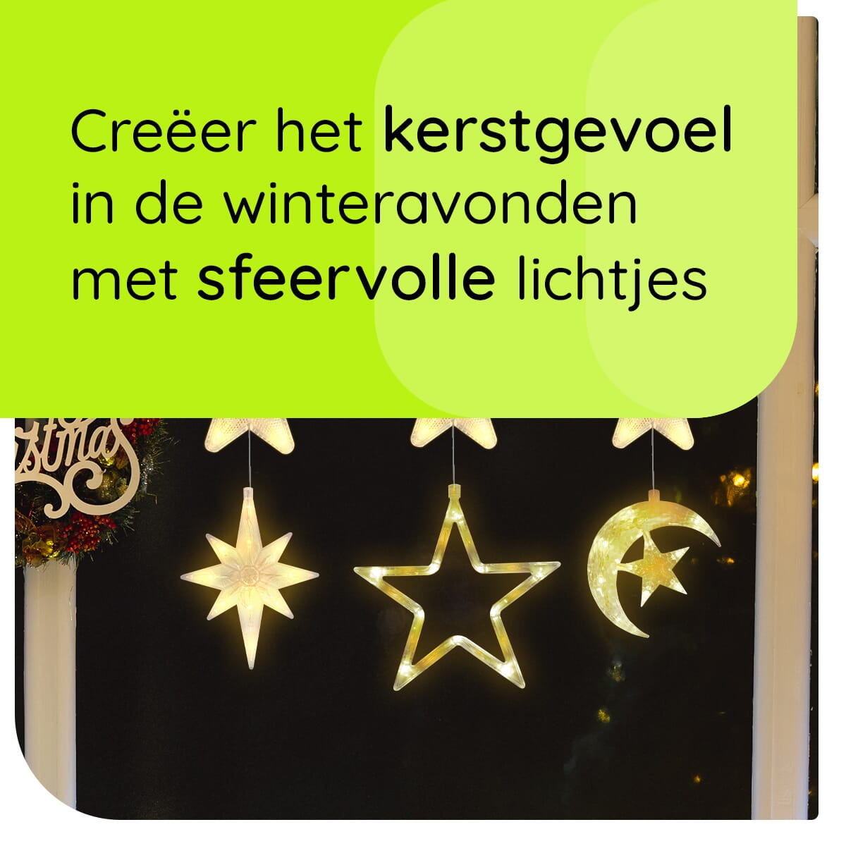 Kerstverlichting set voor het raam met halve maan, ster en noorderster