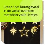 - Eenvoudige bevestiging: Dankzij de handige zuignappen bevestig je de kerstverlichting moeiteloos aan elk raam.