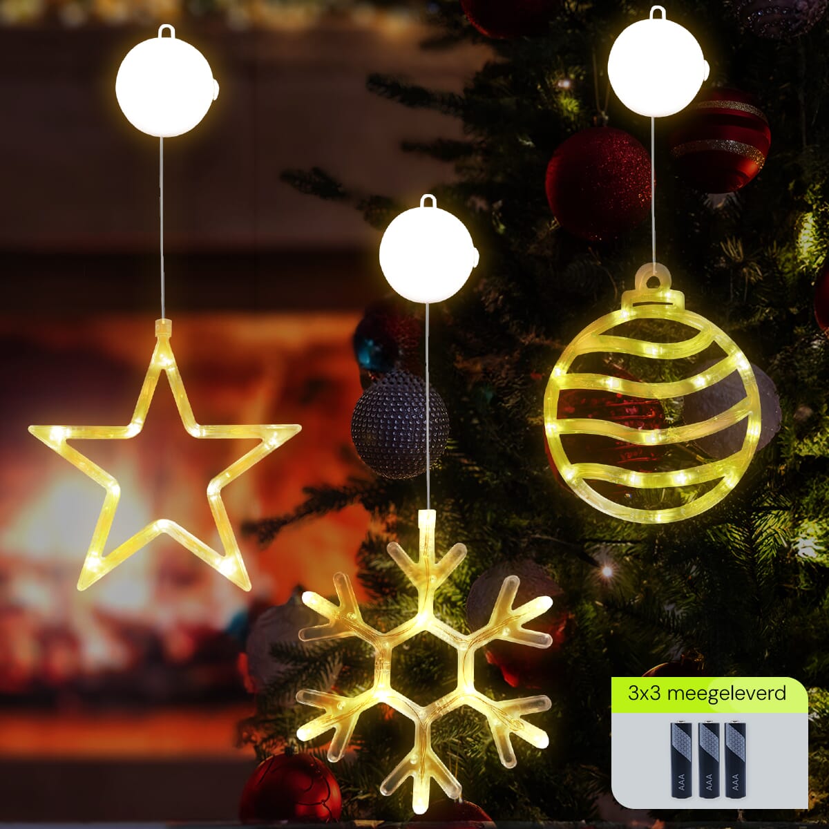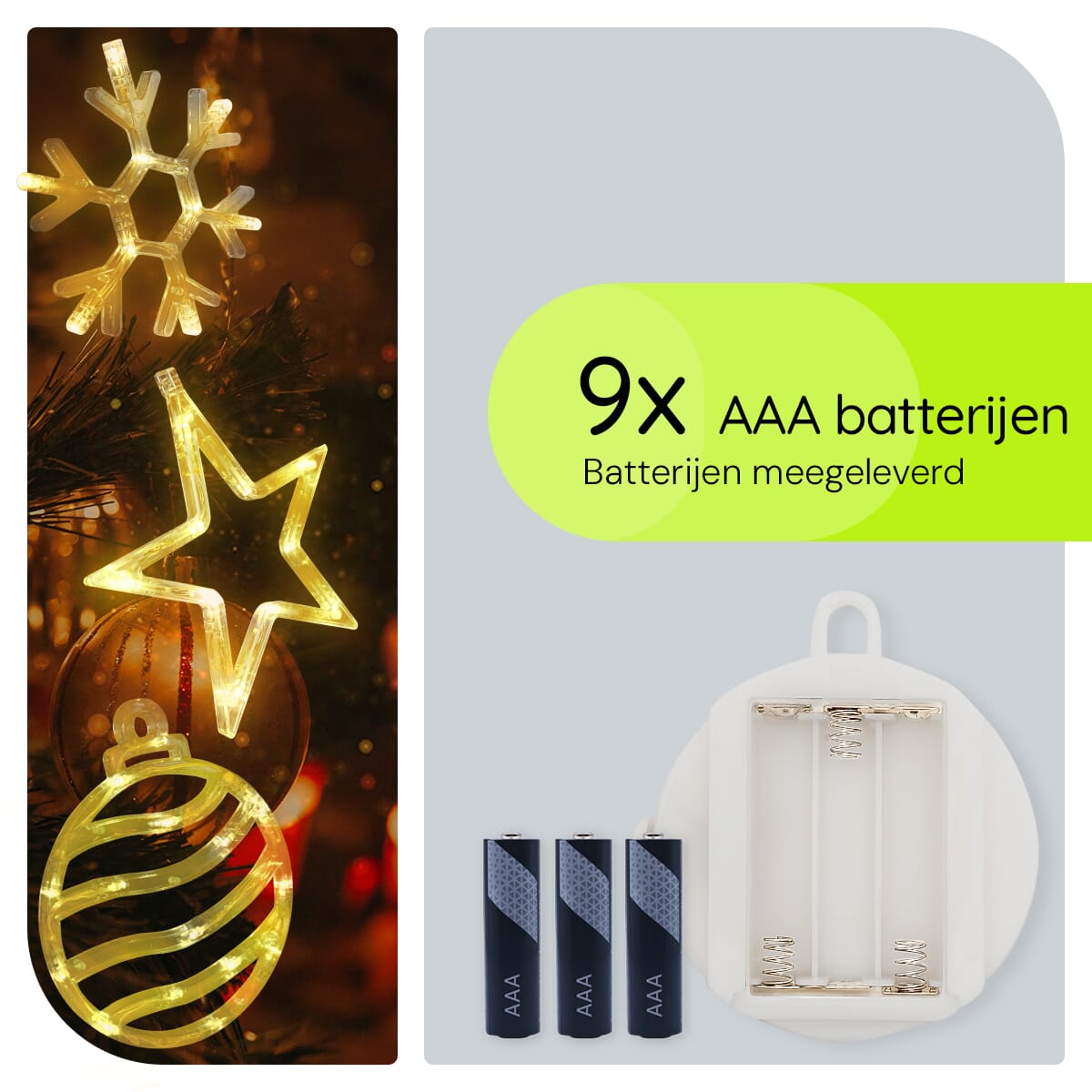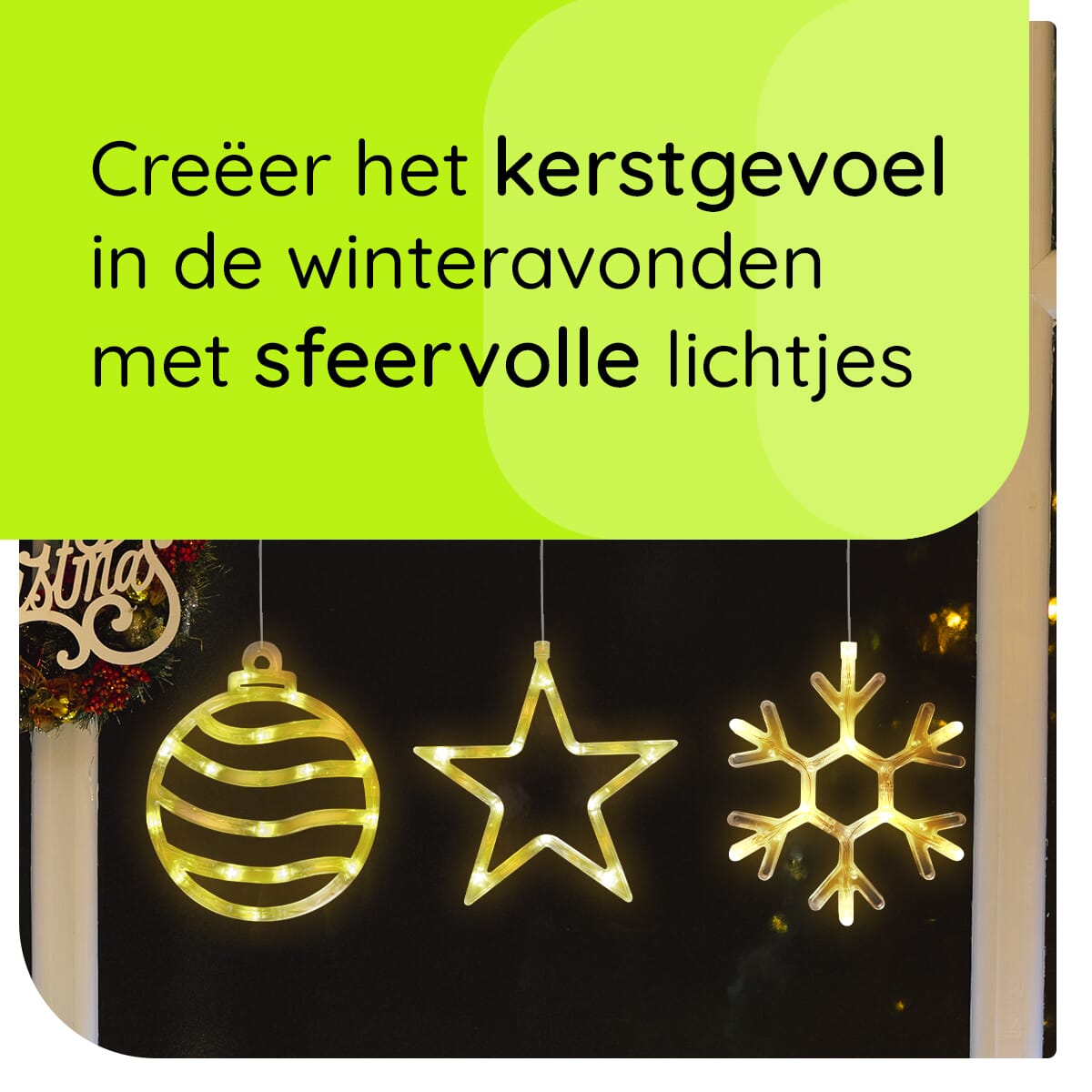 Kerstverlichting voor Raam met Ronde Kerstbal, Sneeuwvlok en Kerstster