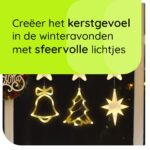 Met de meegeleverde zuignappen is het ophangen van deze kerstverlichting een fluitje van een cent. Plaats ze eenvoudig op elk raam en geniet van een prachtig verlichte kerstsiering voor binnen.