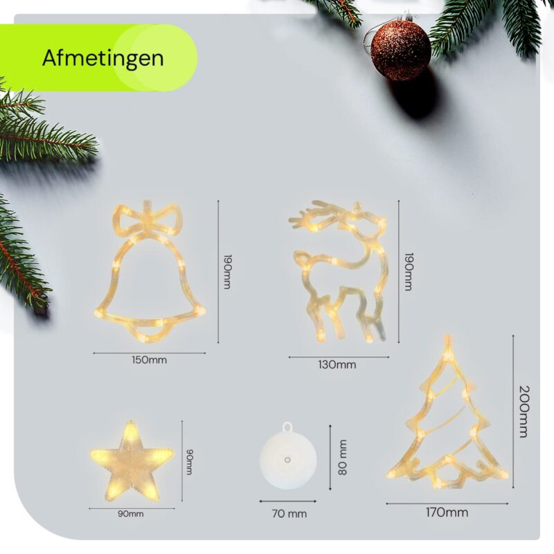 Kerstverlichting Raam Kerstbel Kerstboom Rendier Set