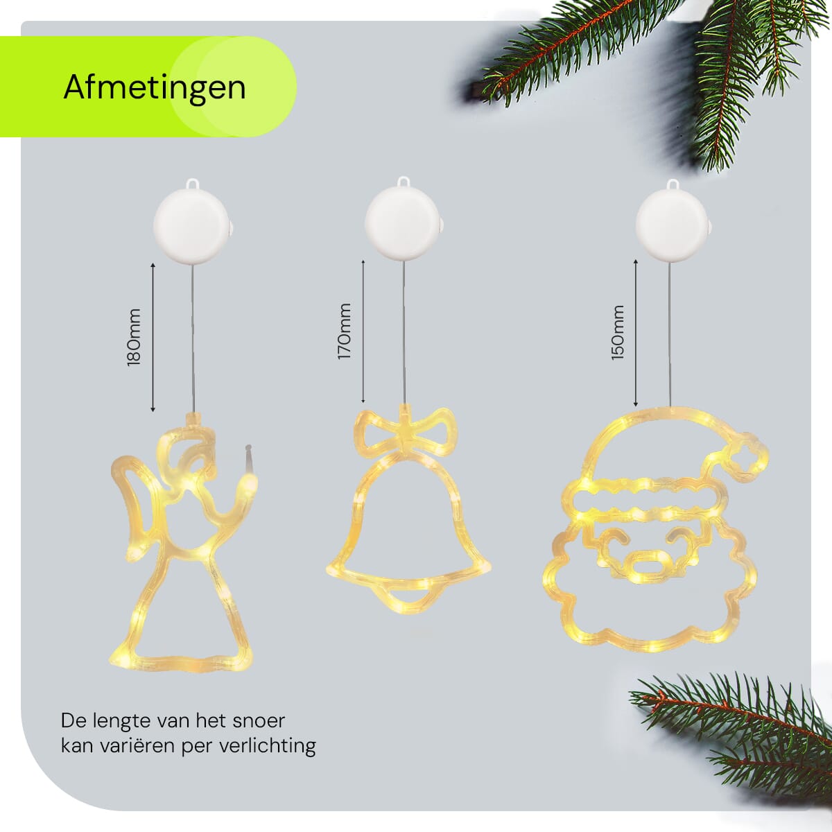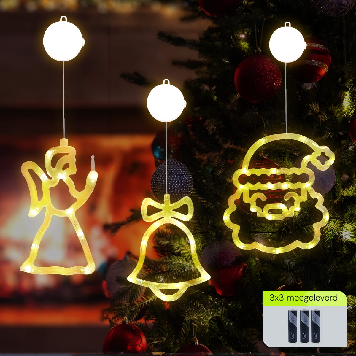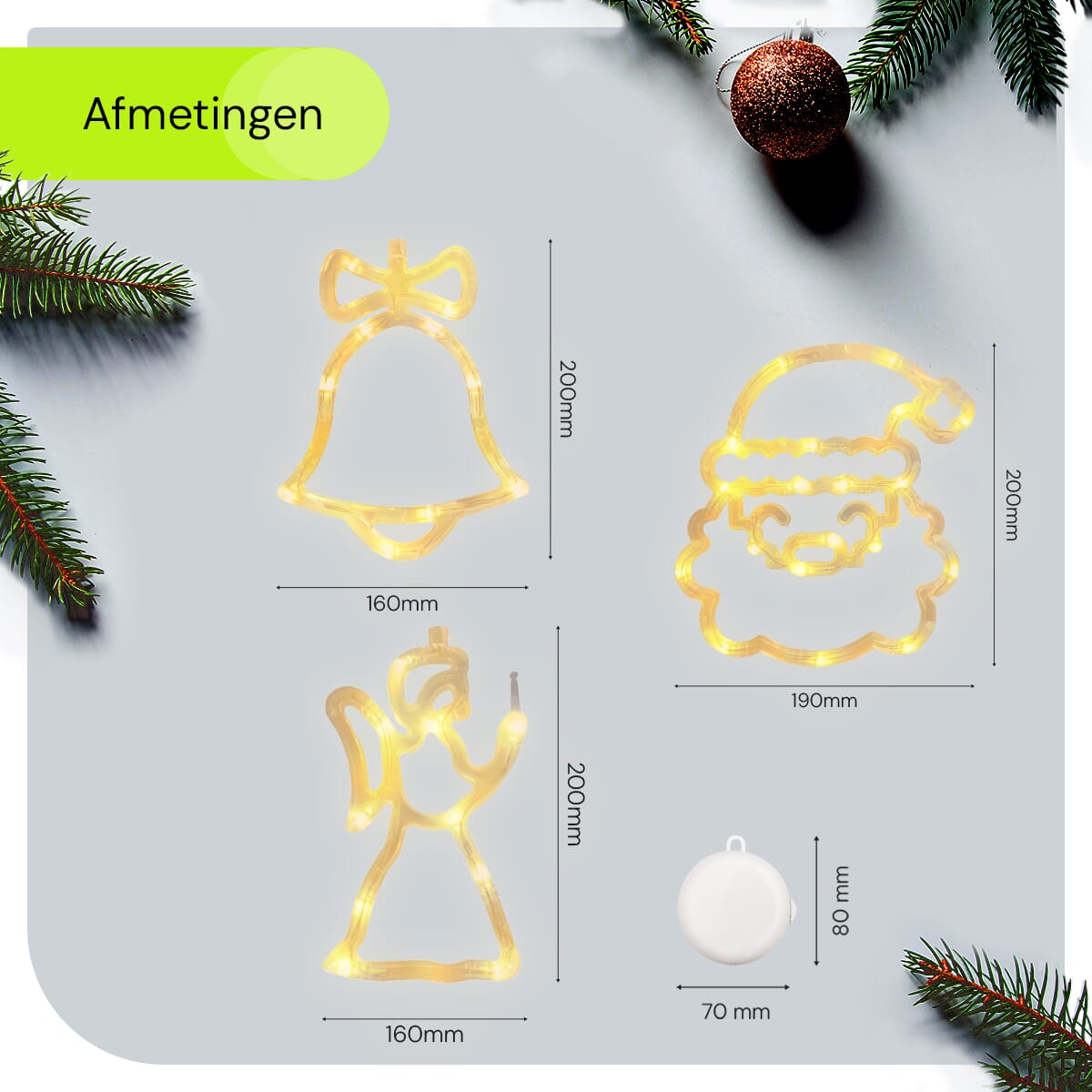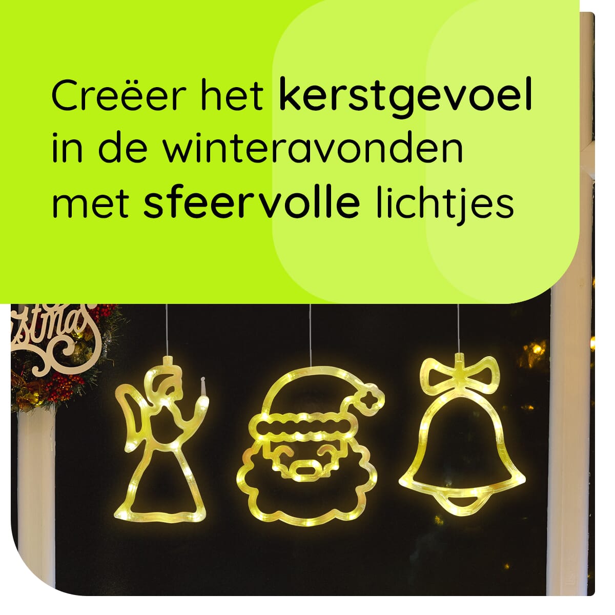 Breng de magie van Kerstmis naar je huis met onze prachtige verlichte raamdecoratie. Deze set van drie vrolijke kerstfiguren een kerstbel, een kerstengel en het gezicht van de kerstman tovert elke ruimte om tot een feestelijk paradijs. Met hun warme gloed en charmante ontwerpen creëren ze een betoverende sfeer die je familie en gasten zeker zal bekoren.