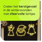 De kerstbel van 20×16 cm brengt een klassieke uitstraling naar je raam. Met zijn sprankelende verlichting en herkenbare vorm is het een echte blikvanger die de kerstsfeer compleet maakt.