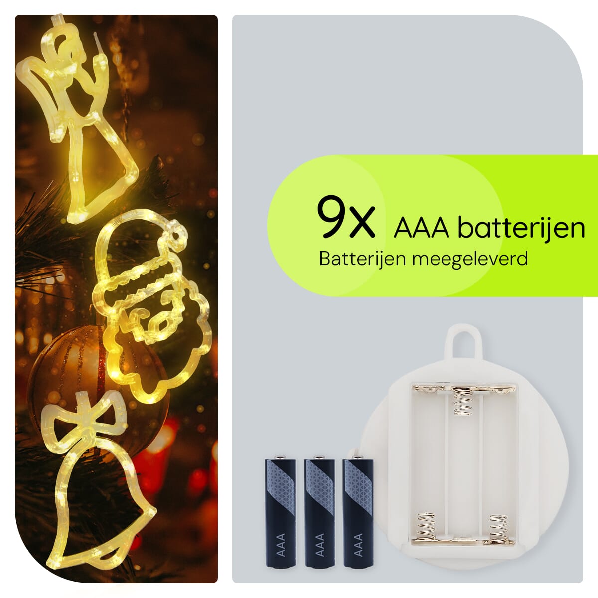 Onze kerstverlichting werkt eenvoudig. Bevestig de decoraties met de zuignap aan het raam, schakel de verlichting in met de batterijen en geniet van de feestelijke gloed. De raamverlichting met koordje maakt het gemakkelijk om de decoraties precies op de gewenste plek te hangen.