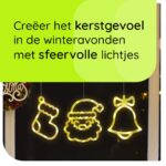 De verlichte raamdecoratie met kerstbel, kerstman gezicht en kerstsok brengt een glimlach op ieders gezicht. Perfect om je huis in de kerstsfeer te brengen en je ramen te laten stralen.