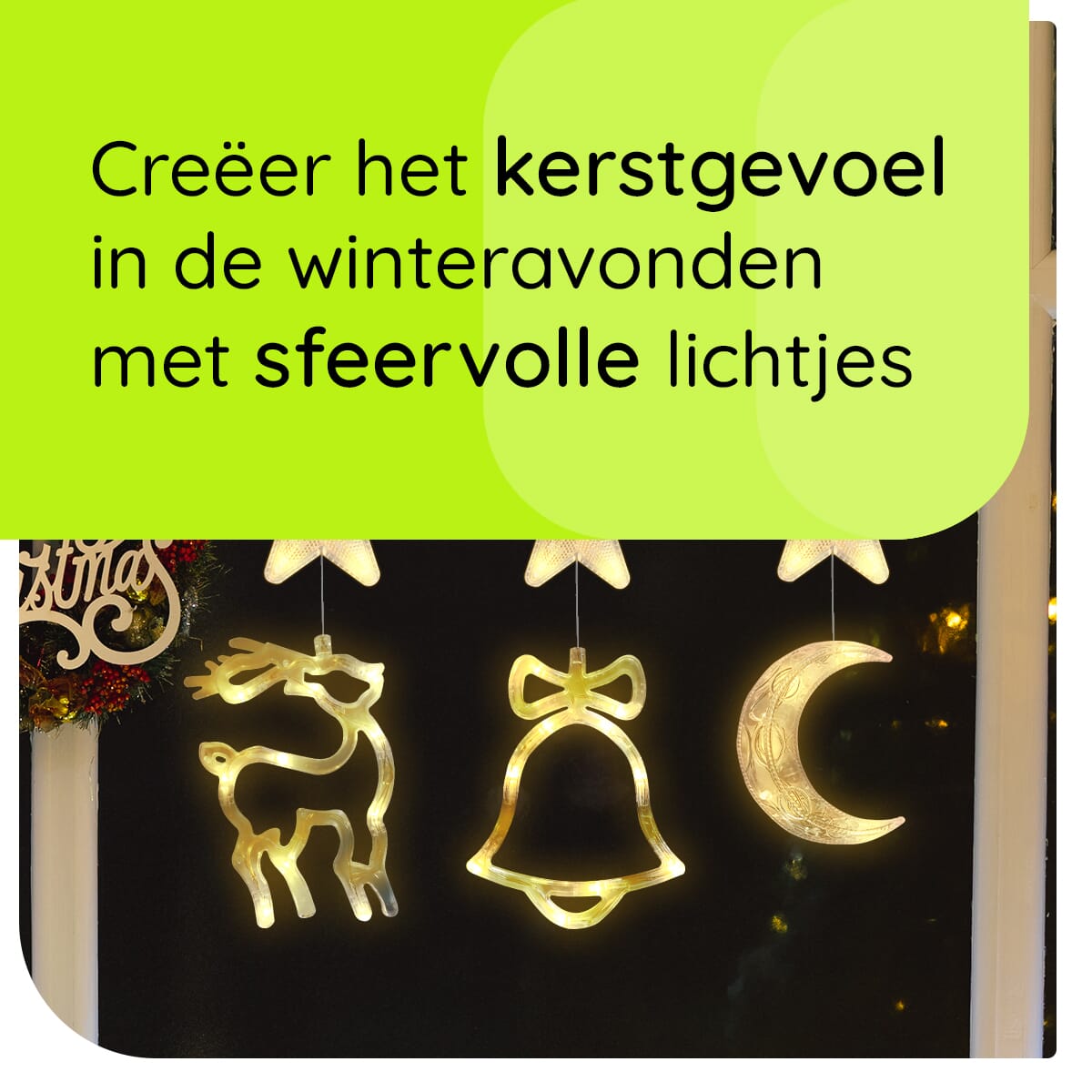 Kerstverlichting Raam met Kerstbel, Maan en Rendier