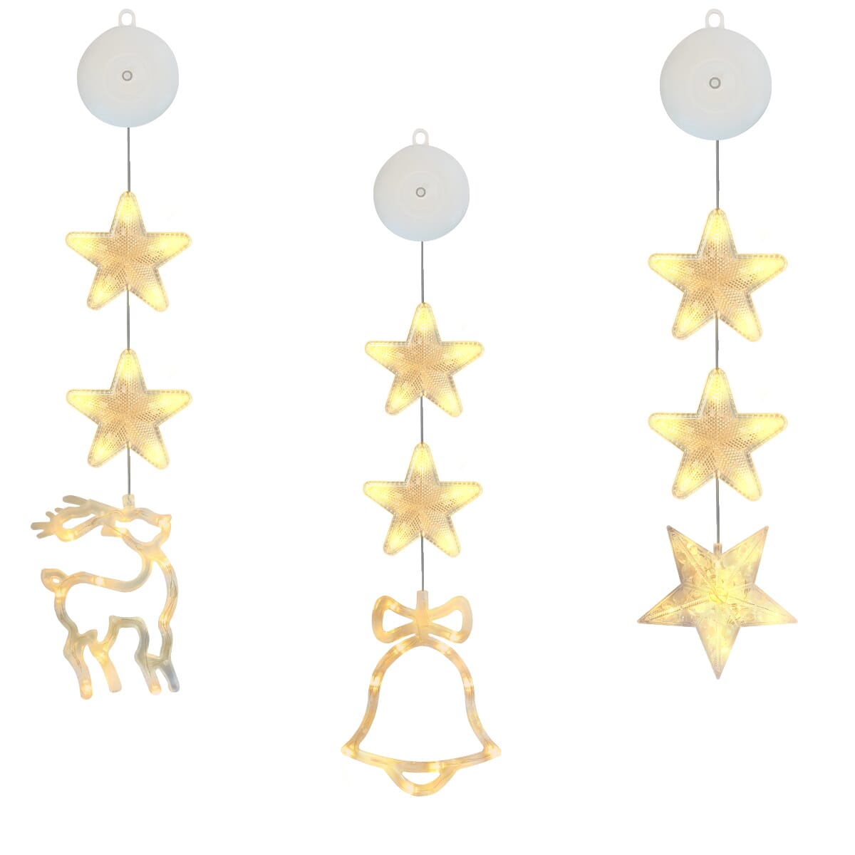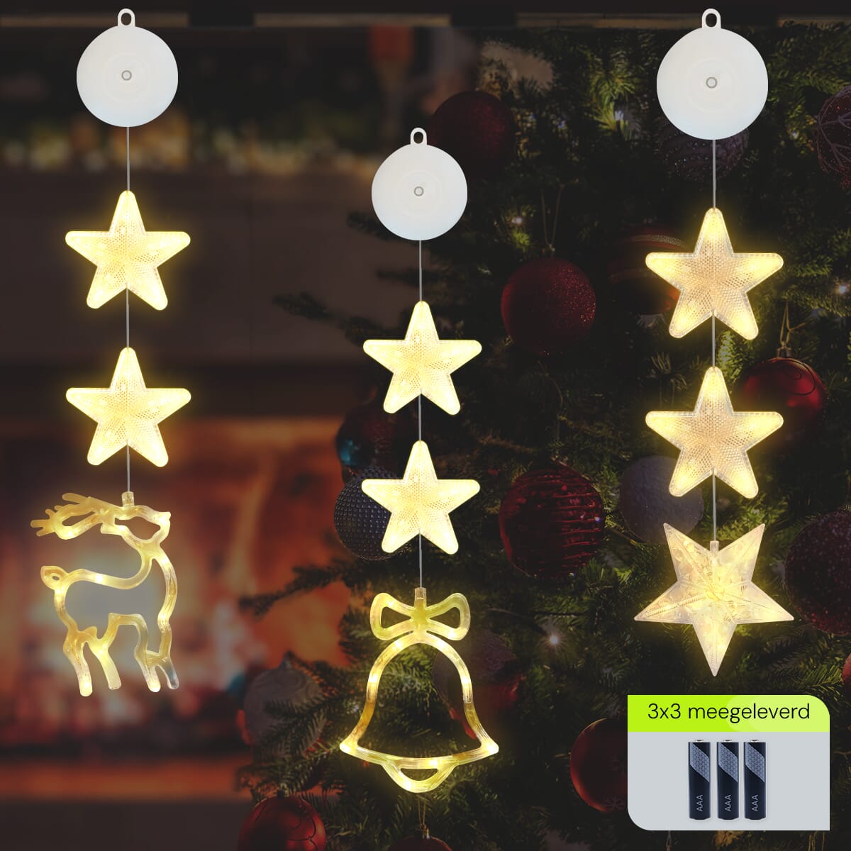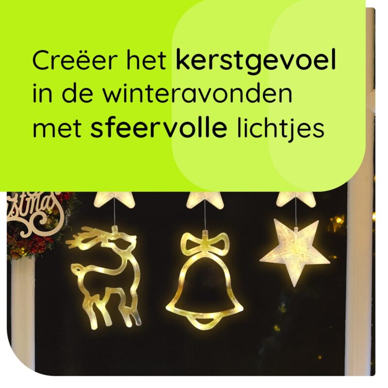 Kerstverlichting Raam met Kerstbel, Rendier en Sterren