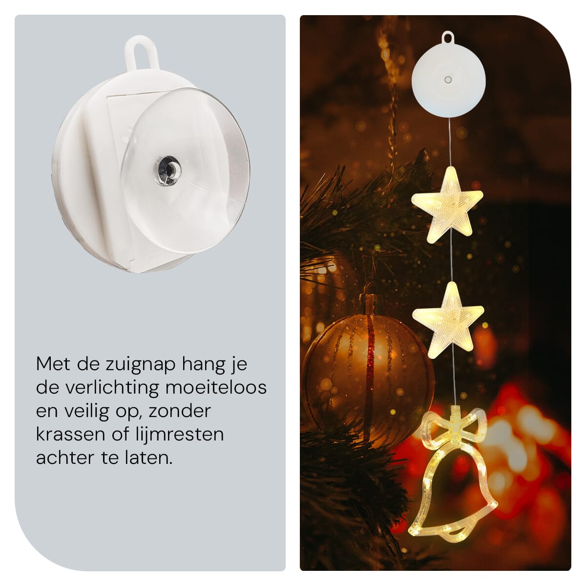 Met de meegeleverde zuignappen is het ophangen van deze kerstverlichting een fluitje van een cent. Plaats ze eenvoudig op elk raam en geniet van een prachtig verlichte kerstsiering voor binnen.