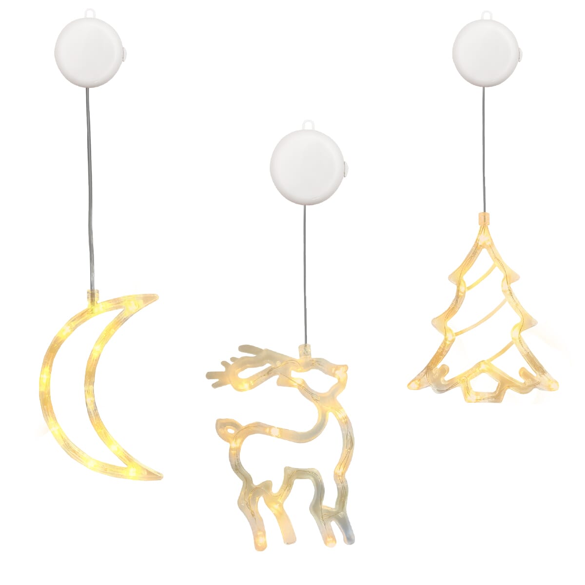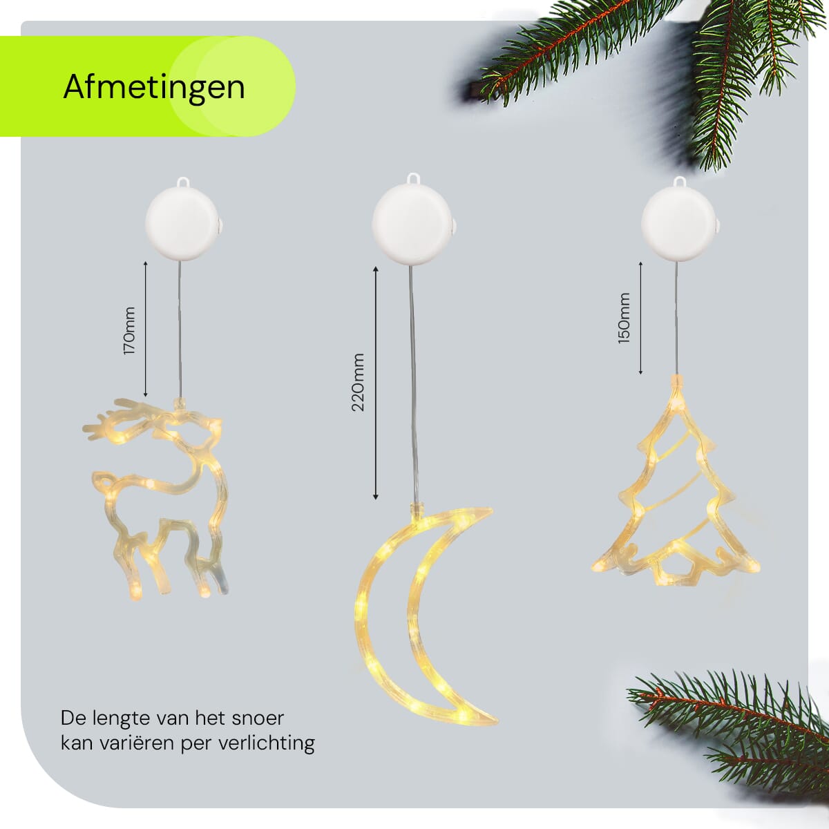 - Ruime afmetingen: Met afmetingen van 20x16cm voor de kerstboom, 18x11cm voor de maan en 21x14cm voor het rendier, zijn ze perfect zichtbaar van buitenaf.