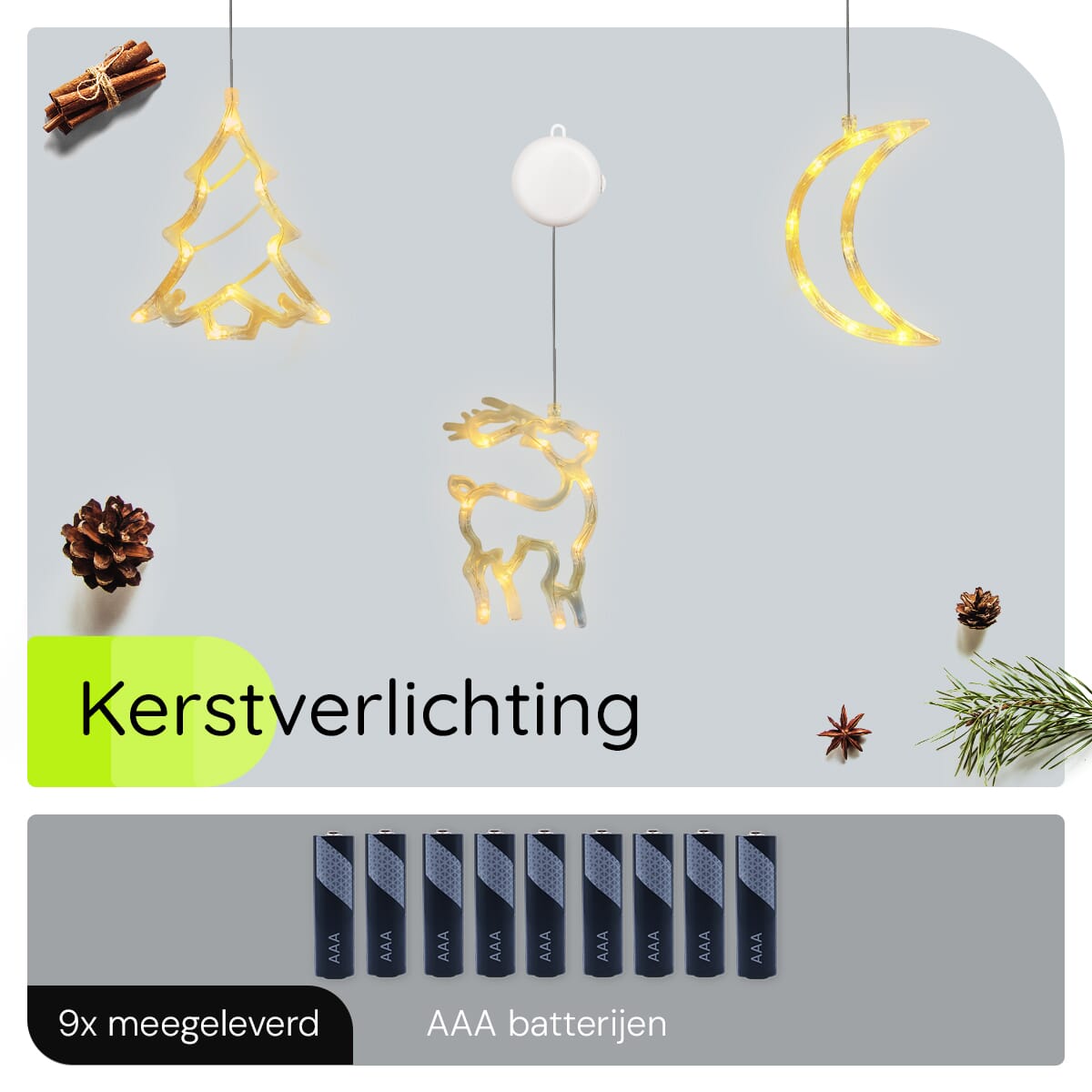 - Veilige batterijen: Inclusief 3×3 AAA-batterijen, waardoor je geen lastige snoeren nodig hebt en je de verlichting overal kunt plaatsen.