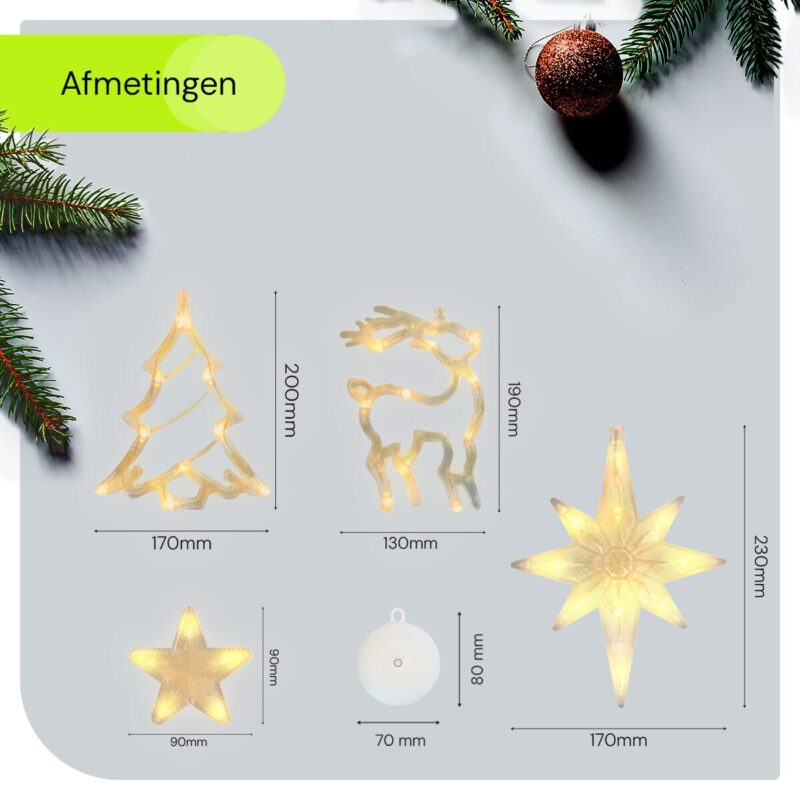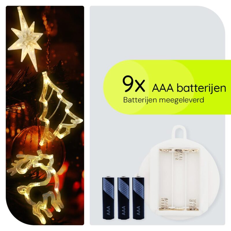 Met de meegeleverde zuignappen is het ophangen van deze kerstverlichting een fluitje van een cent. Plaats ze eenvoudig op elk raam en geniet van een prachtig verlichte kerstsiering voor binnen.