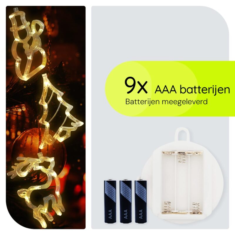 Kerstverlichting set voor het raam met kerstboom, rendier en sneeuwpop