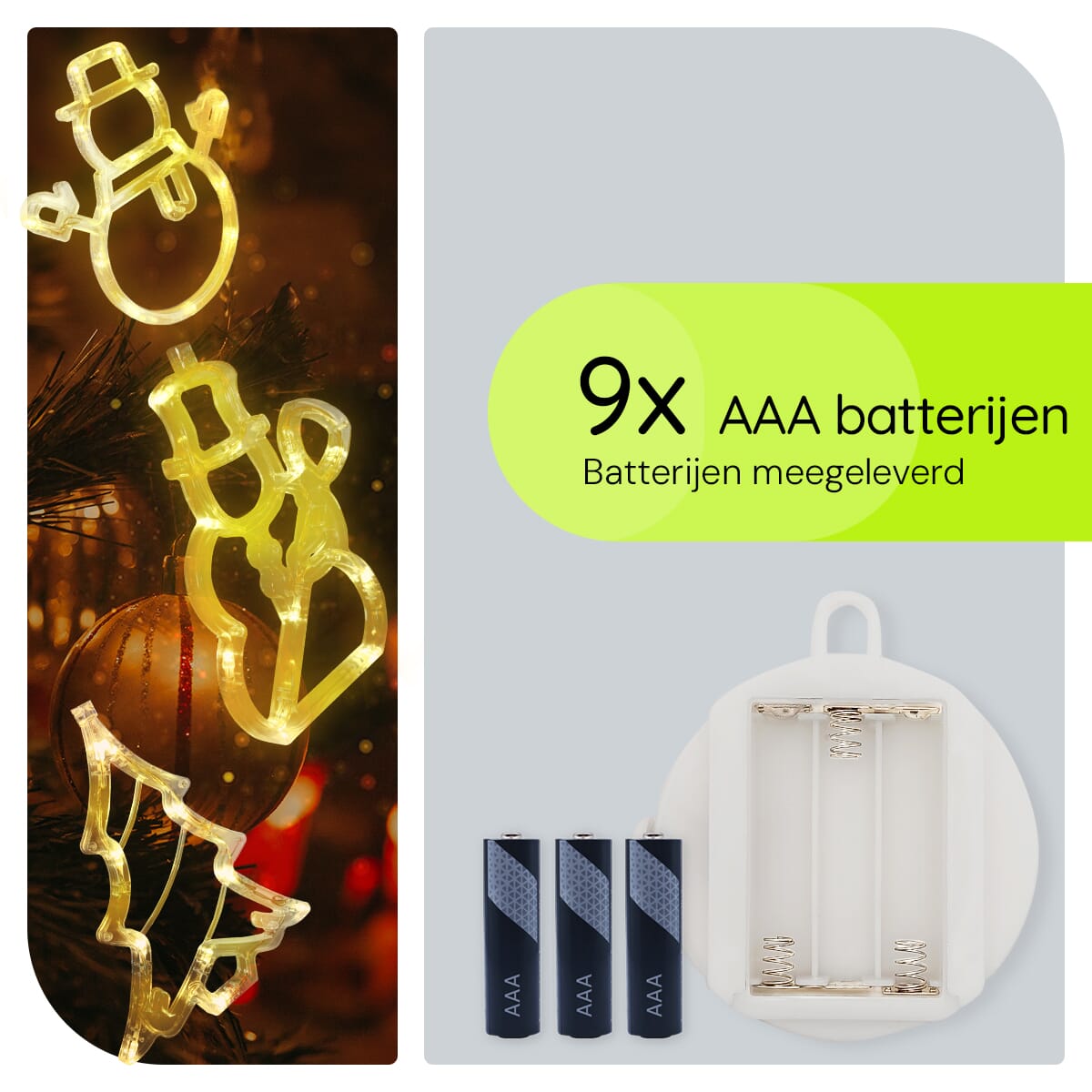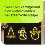 Bevestig eenvoudig de decoraties met de zuignappen aan je raam. Plaats de batterijen en schakel de verlichting in voor een magische kerstervaring. Geen gedoe met snoeren of stopcontacten, enkel genieten van de feestelijke sfeer.
