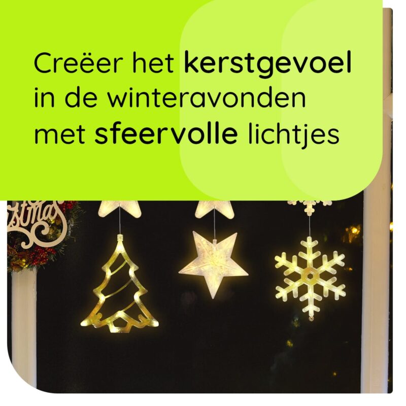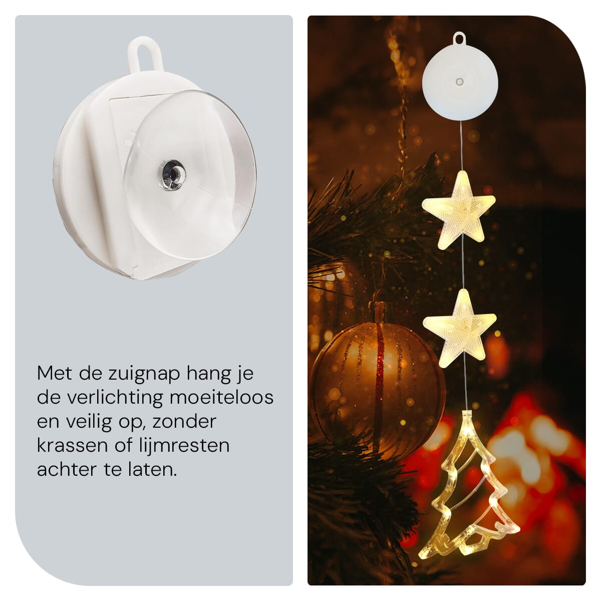 Met de meegeleverde zuignappen is het ophangen van deze kerstverlichting een fluitje van een cent. Plaats ze eenvoudig op elk raam en geniet van een prachtig verlichte kerstsiering voor binnen.