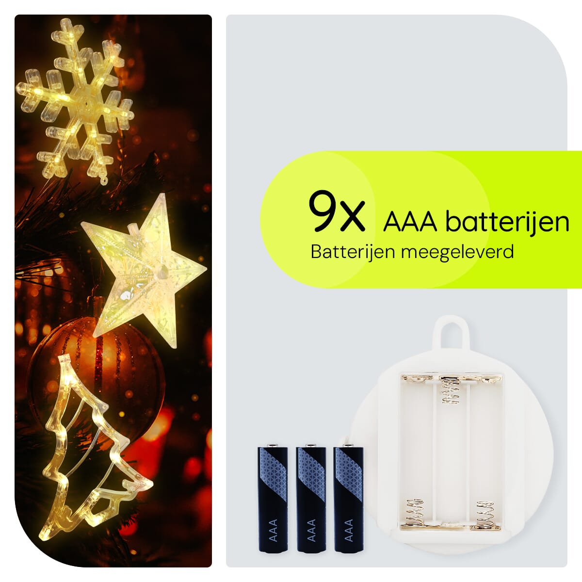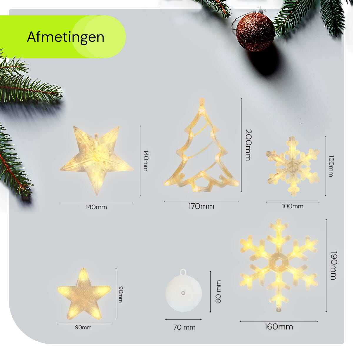 Kerstverlichting set voor het raam met kerstboom, sneeuwvlokken en sterren