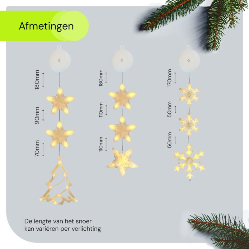 - Eenvoudige bevestiging: Dankzij de handige zuignappen bevestig je de kerstverlichting moeiteloos aan elk raam.