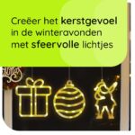 Breng een warme en feestelijke sfeer in huis met onze vrolijke kerstverlichting voor het raam. Deze unieke set van drie verlichte figuren geeft je ramen een betoverende uitstraling en zorgt ervoor dat jouw kerstdecoratie echt opvalt.