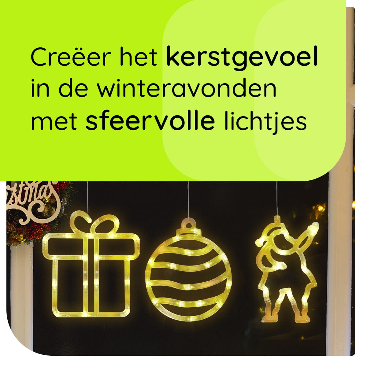 Vrolijke Kerstverlichting voor het Raam