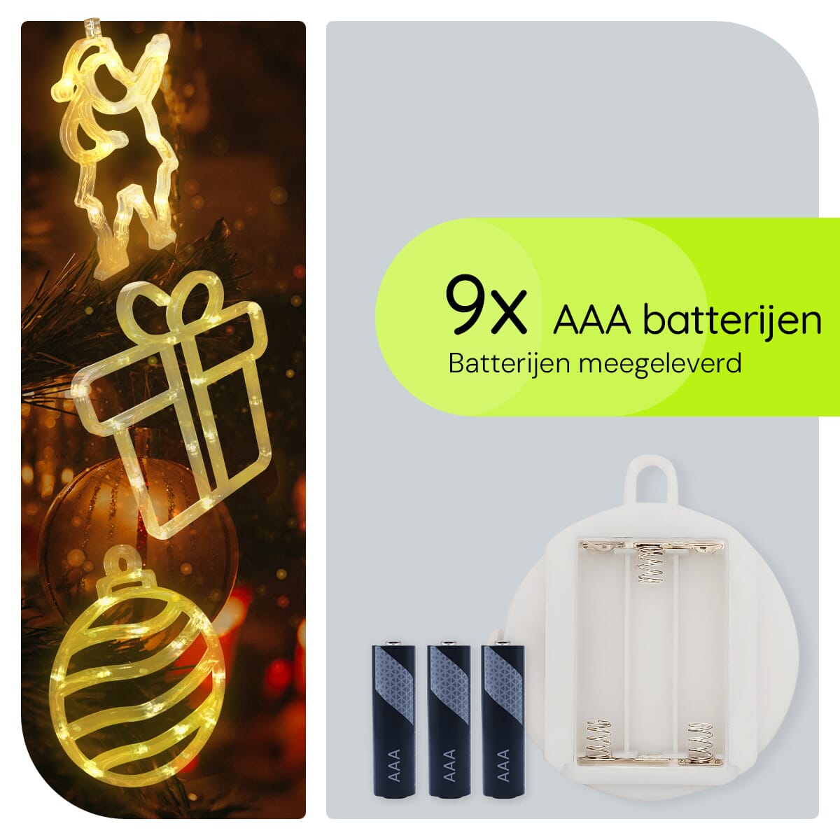 Deze verlichte raamdecoratie werkt eenvoudig: plaats de batterijen in de houder, bevestig de figuren met de zuignappen aan het raam, en laat de magie beginnen! De verlichting zorgt voor een zachte gloed die perfect is voor de donkere winteravonden.