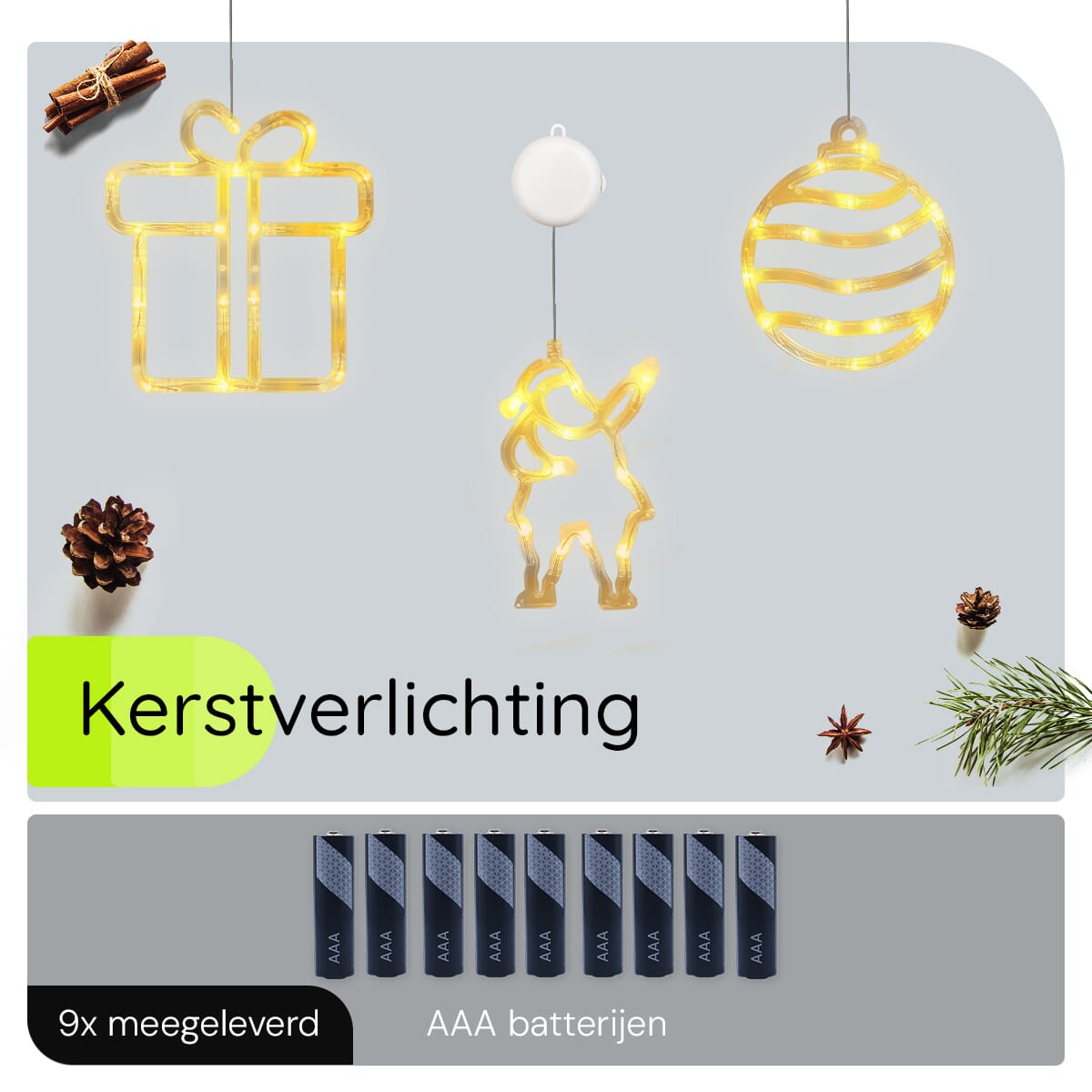 - Zijn de batterijen inbegrepen? Ja, de set wordt geleverd met 3×3 AAA batterijen.