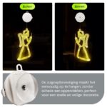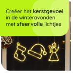 De kerstengel meet 20x16cm en straalt een zachte, warme gloed uit. De kerstsok van 16x16cm voegt een speelse touch toe, terwijl de kerstmuts van 20x14cm een klassieke kerstsfeer creëert. Deze verlichte raamdecoratie zorgt ervoor dat jouw huis opvalt in de donkere decemberdagen.