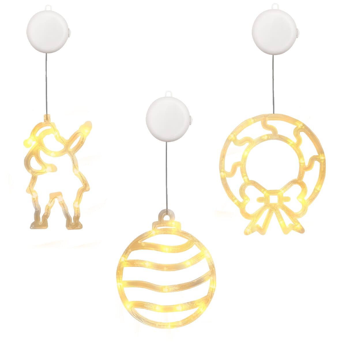 - Zijn de decoraties afzonderlijk te gebruiken? Ja, elke decoratie heeft zijn eigen zuignap en kan afzonderlijk aan elk raam worden bevestigd.