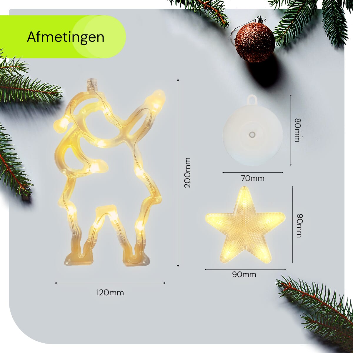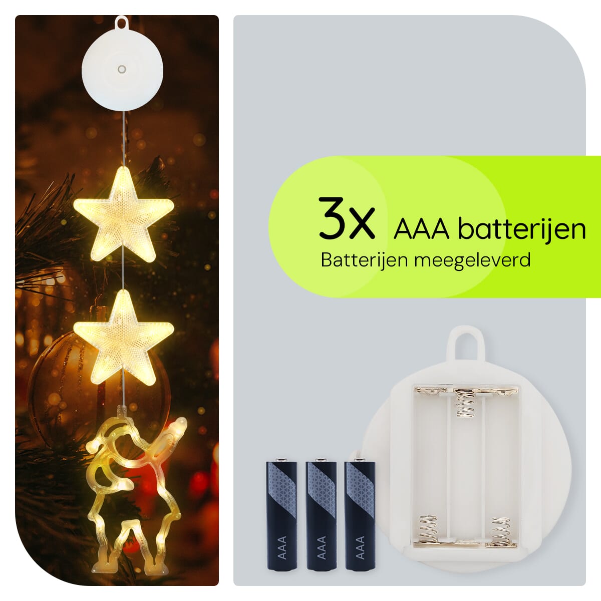 - Eenvoudige installatie: Met de handige zuignap bevestig je de kerstverlichting moeiteloos aan elk raam.