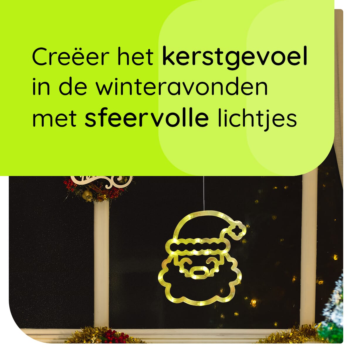 Sfeervolle Kerstverlichting voor het Raam – Kerstman Gezicht