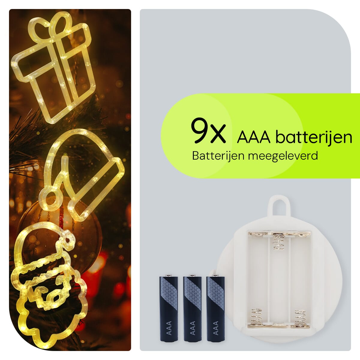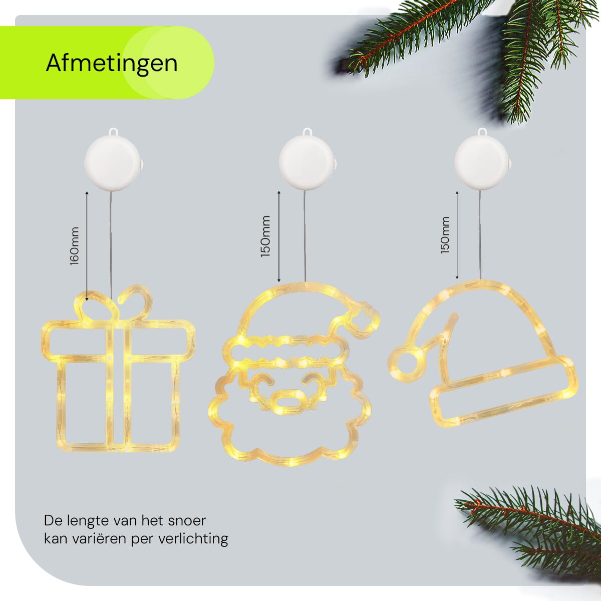 De kerstverlichting werkt eenvoudig via een koordje met zuignap, waardoor je zelf bepaalt waar je de decoraties plaatst. Creëer een uniek kersttafereel aan je raam en geniet van de feestelijke verlichting die je interieur opvrolijkt.