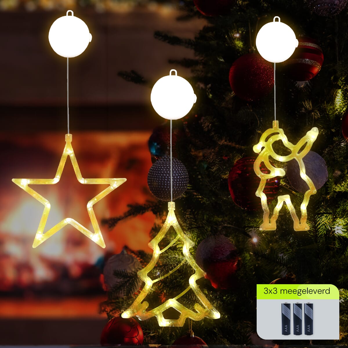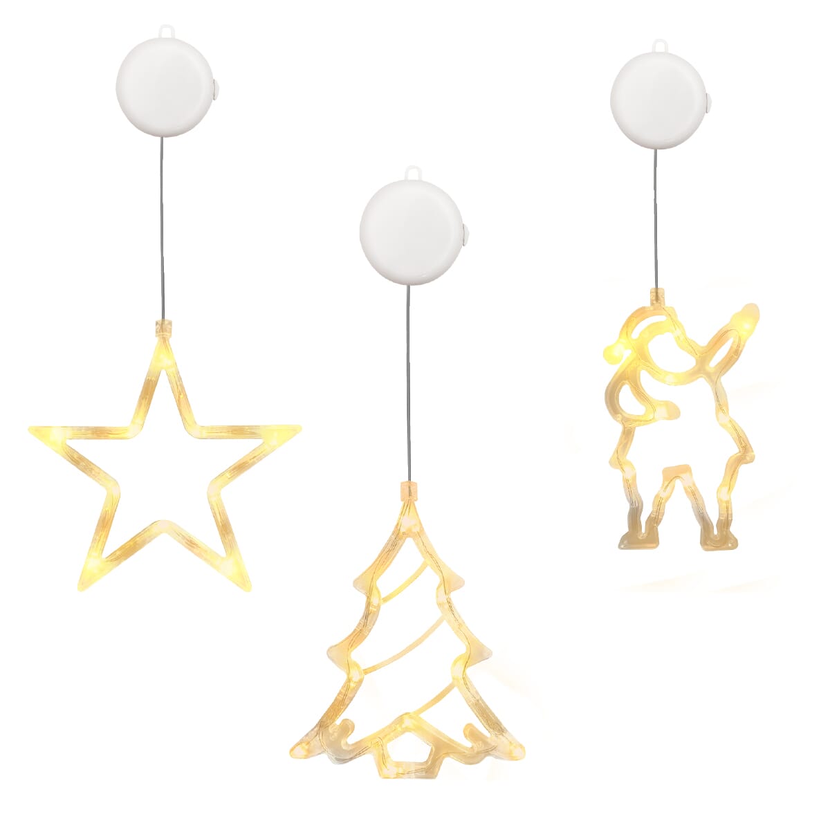Breng de magie van Kerst naar je huis met deze prachtige kerstverlichting voor je raam. Deze set van drie verlichte figuren, waaronder een Kerstman, een Kerstster, en een Kerstboom, zorgt voor een feestelijke uitstraling die je raam laat stralen. Perfect voor iedereen die op zoek is naar een unieke en vrolijke kerstsfeer.