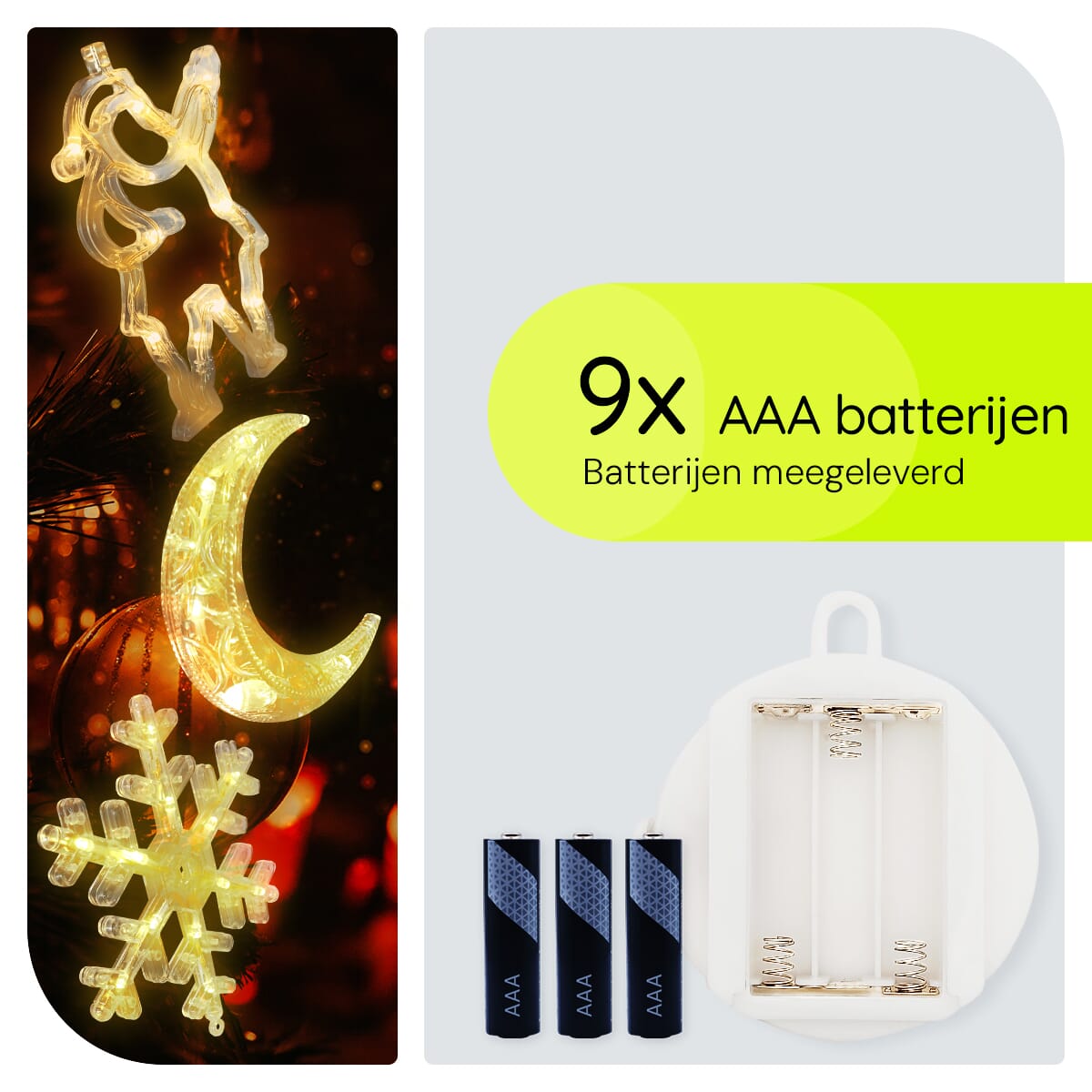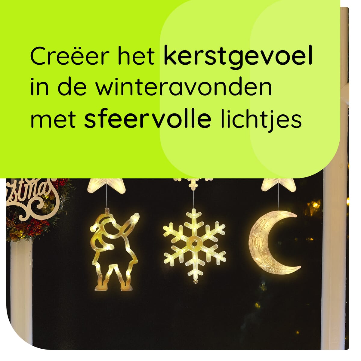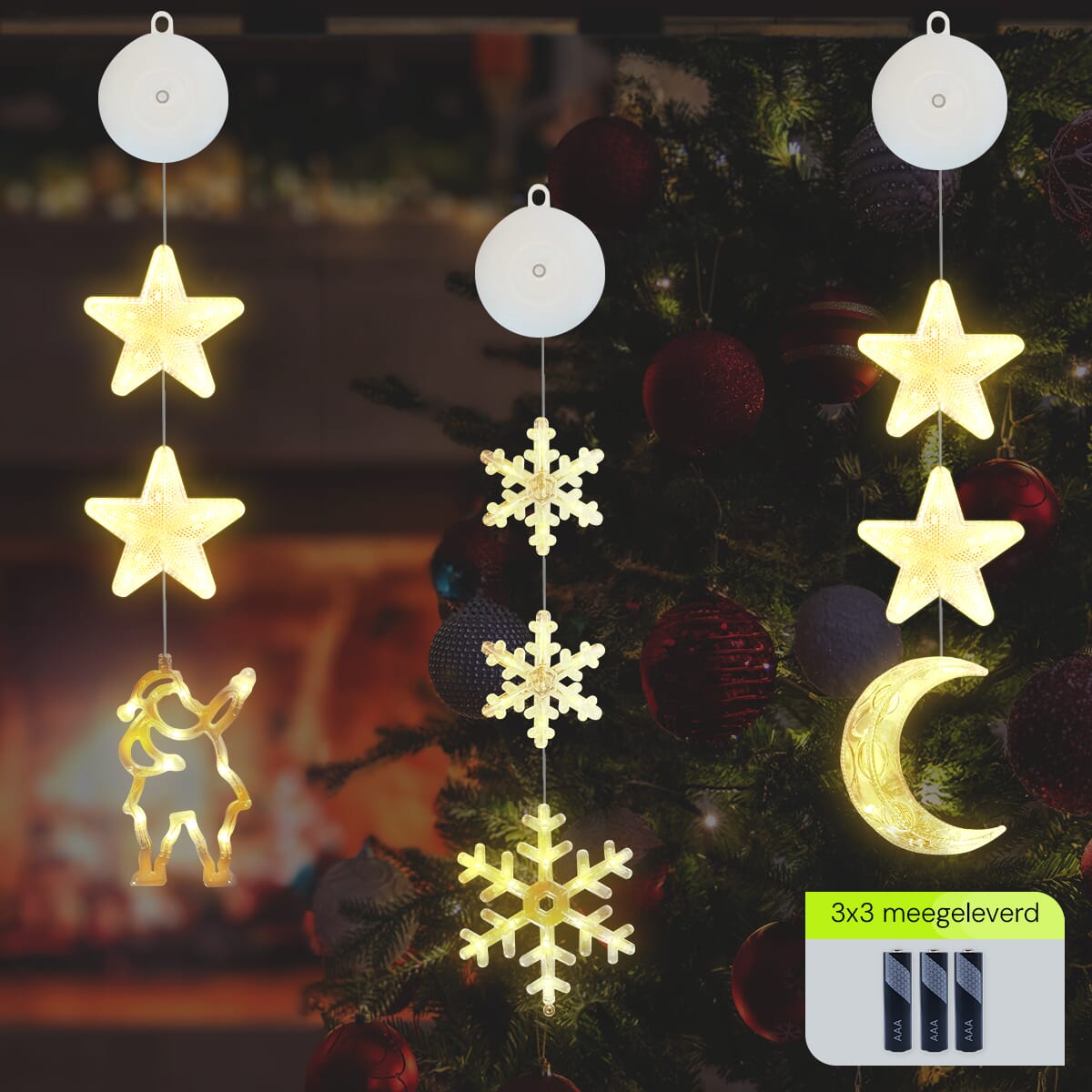 - Eenvoudige bevestiging: Dankzij de handige zuignappen bevestig je de kerstverlichting moeiteloos aan elk raam.