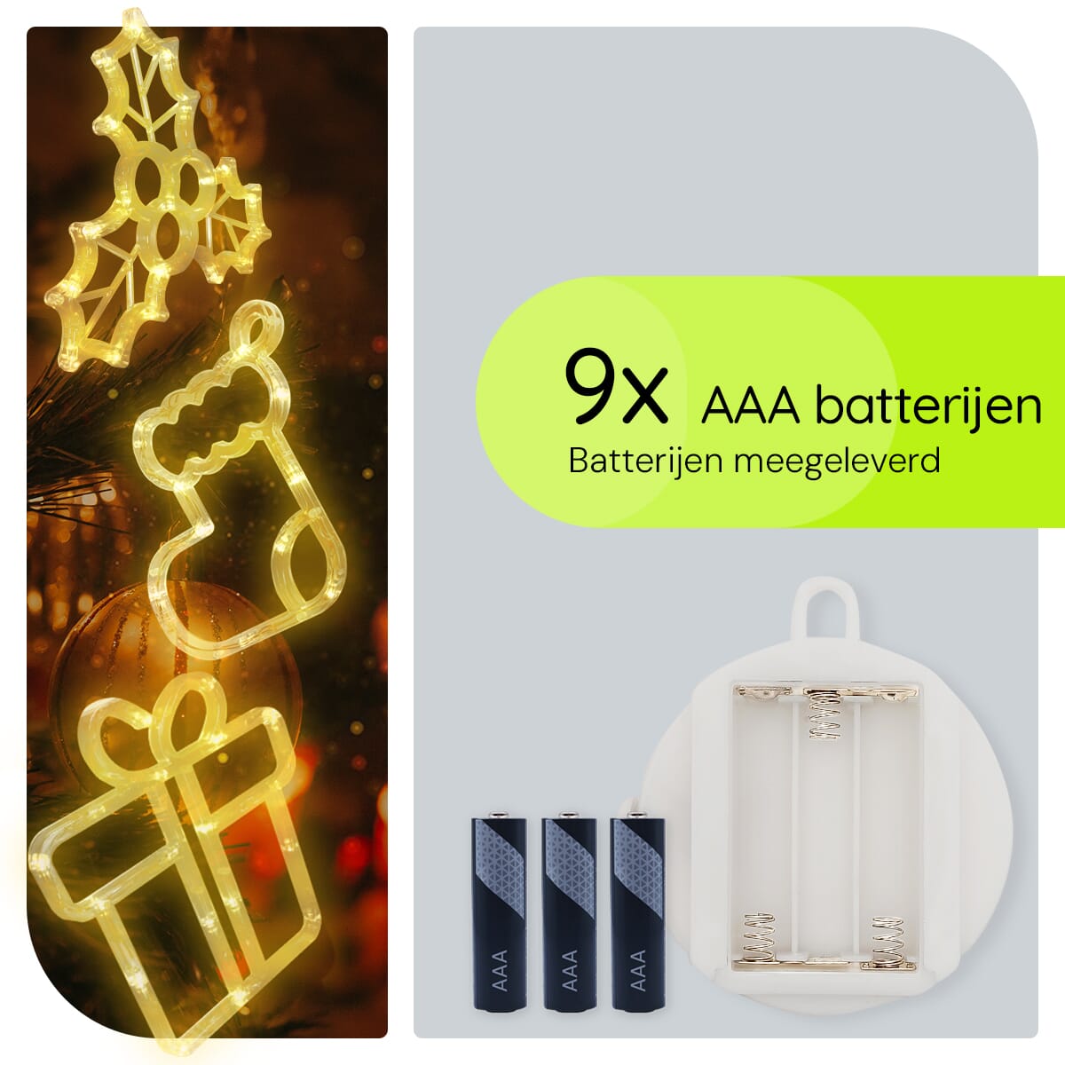 De raamverlichting is eenvoudig te gebruiken. Bevestig de figuren met de zuignap aan je raam, plaats de meegeleverde AAA batterijen in de houder en geniet van de sfeervolle verlichting. Geen gedoe met kabels of stopcontacten, enkel genieten van de magie van Kerst.