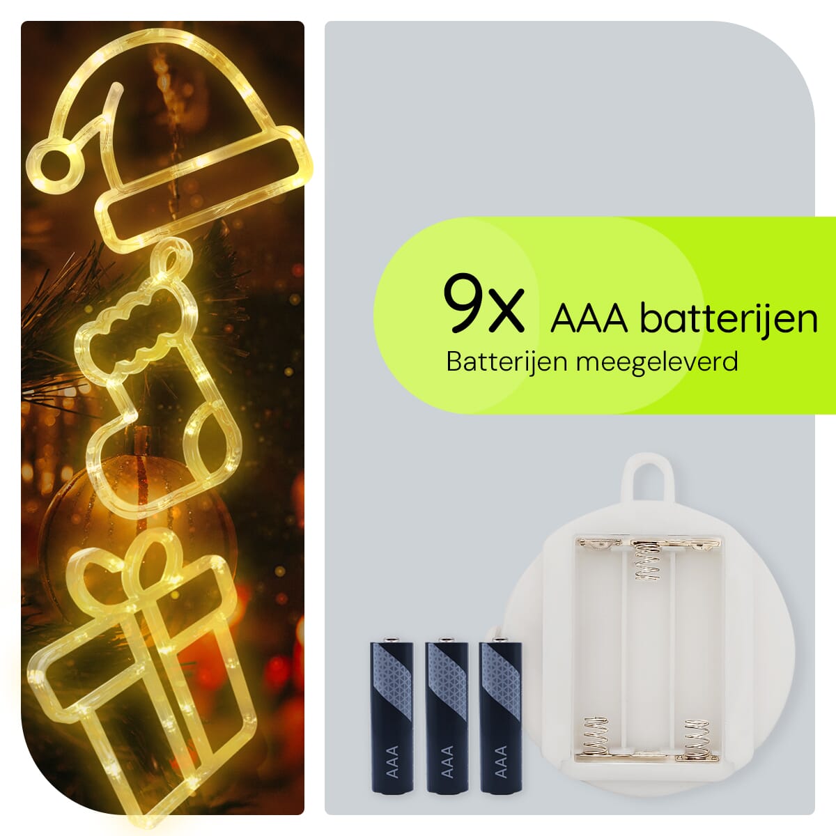 - Unieke uitstraling: De combinatie van een kerstsok, kerstmuts en kerstcadeau maakt je raam uniek en feestelijk.