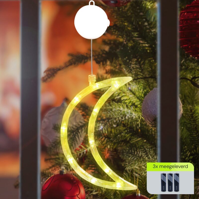 Breng de magie van Kerstmis naar je huis met onze prachtige raamverlichting in de vorm van een maan. Deze sfeervolle kerstversiering is perfect om je ramen te verlichten en een warme, feestelijke sfeer te creëren. Het unieke ontwerp trekt meteen de aandacht en zorgt voor een sprankelend accent in je kerstdecoratie.