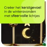 Met een kleurtemperatuur van 2700K straalt deze kerstverlichting een warme witte gloed uit. Dit zorgt voor een gezellige, intieme sfeer die perfect past bij de feestdagen. De combinatie van sterren en een maan onder elkaar maakt het geheel compleet en betoverend.
