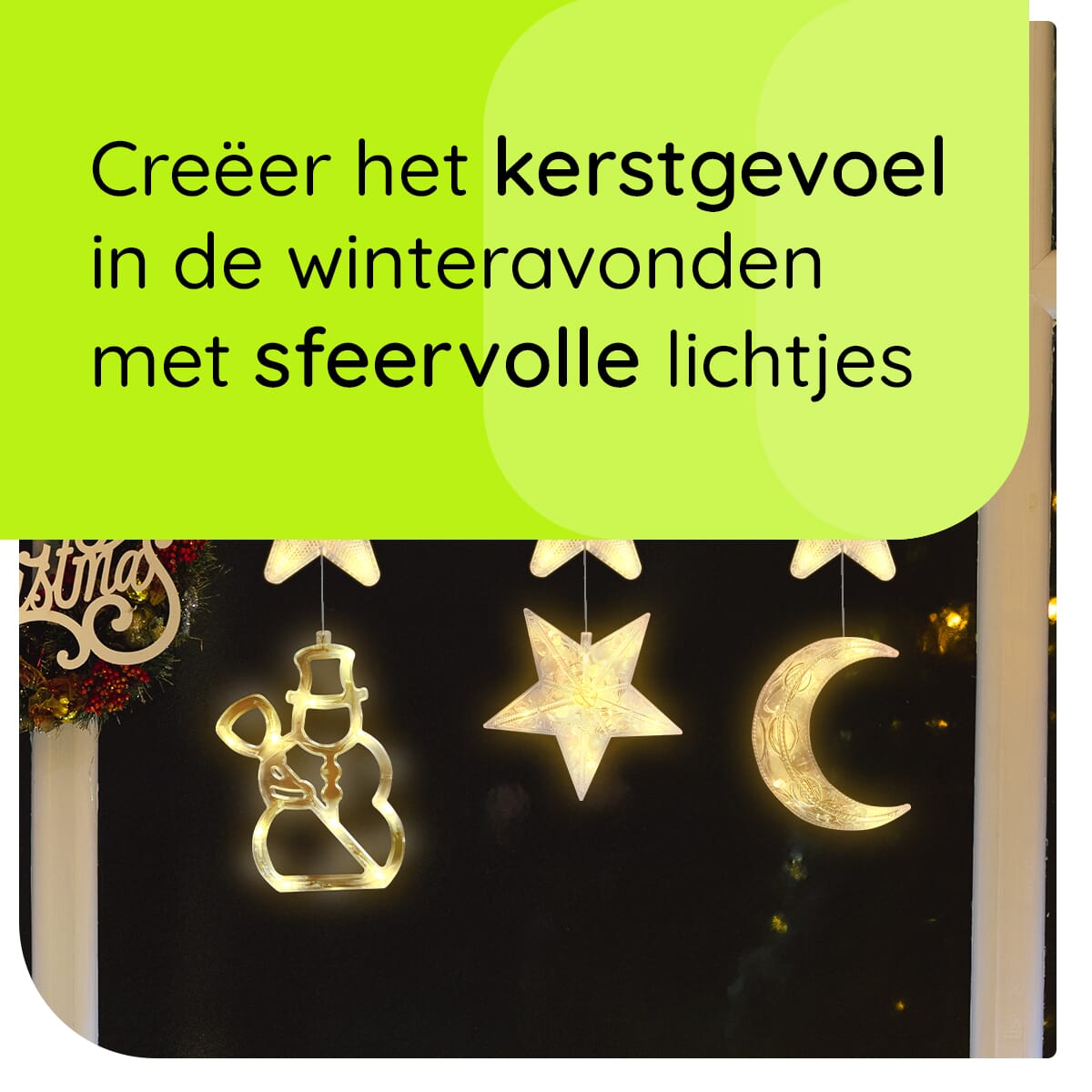 Met de meegeleverde zuignappen is het ophangen van deze kerstverlichting een fluitje van een cent. Plaats ze eenvoudig op elk raam en geniet van een prachtig verlichte kerstsiering voor binnen.
