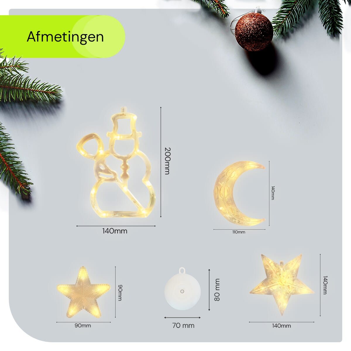 Kerstverlichting set voor het raam met maan, sneeuwpop en sterren