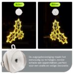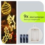 Deze kerstverlichting raamset biedt een unieke manier om je huis te versieren. De mistletoe (20x20cm), kerstbal (18x20cm) en kerstman (20x12cm) zijn speciaal ontworpen om een warme gloed aan je ramen toe te voegen. De verlichting zorgt voor een uitnodigende sfeer die zowel binnen als buiten zichtbaar is, perfect voor het delen van de kerstvreugde met buren en voorbijgangers.
