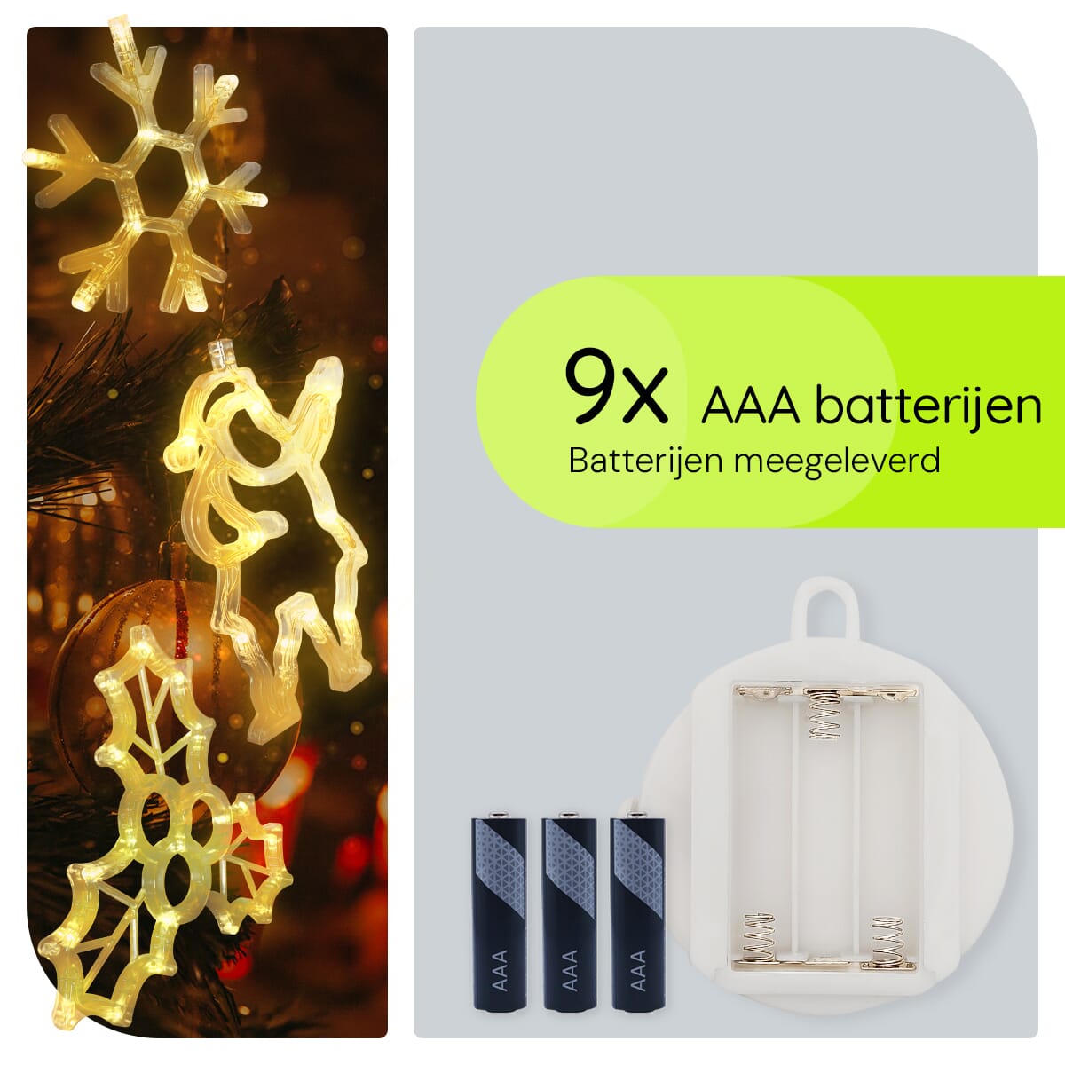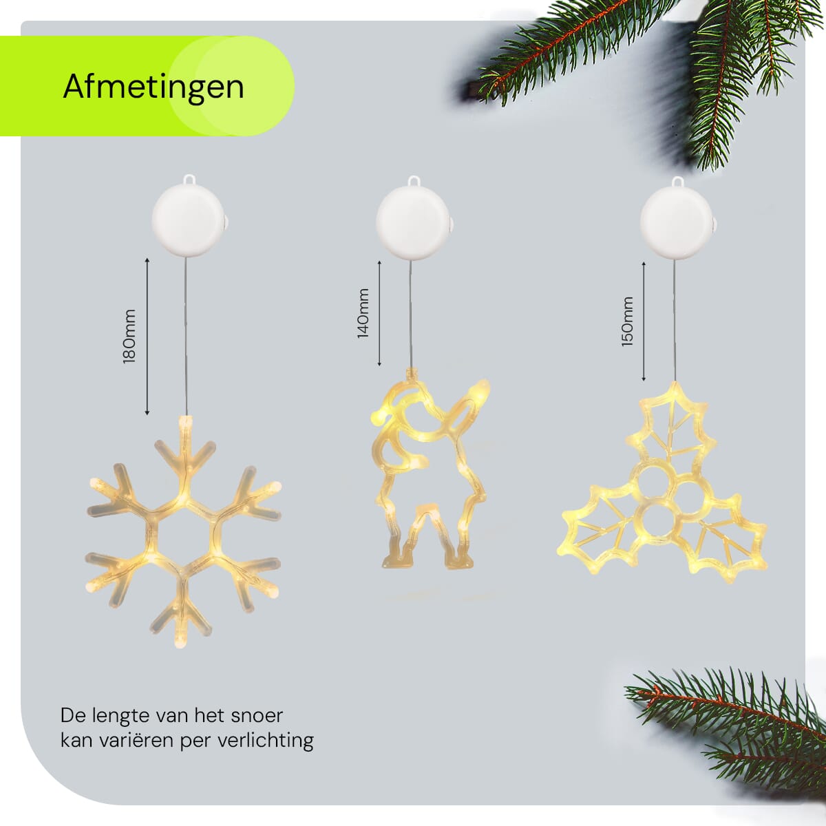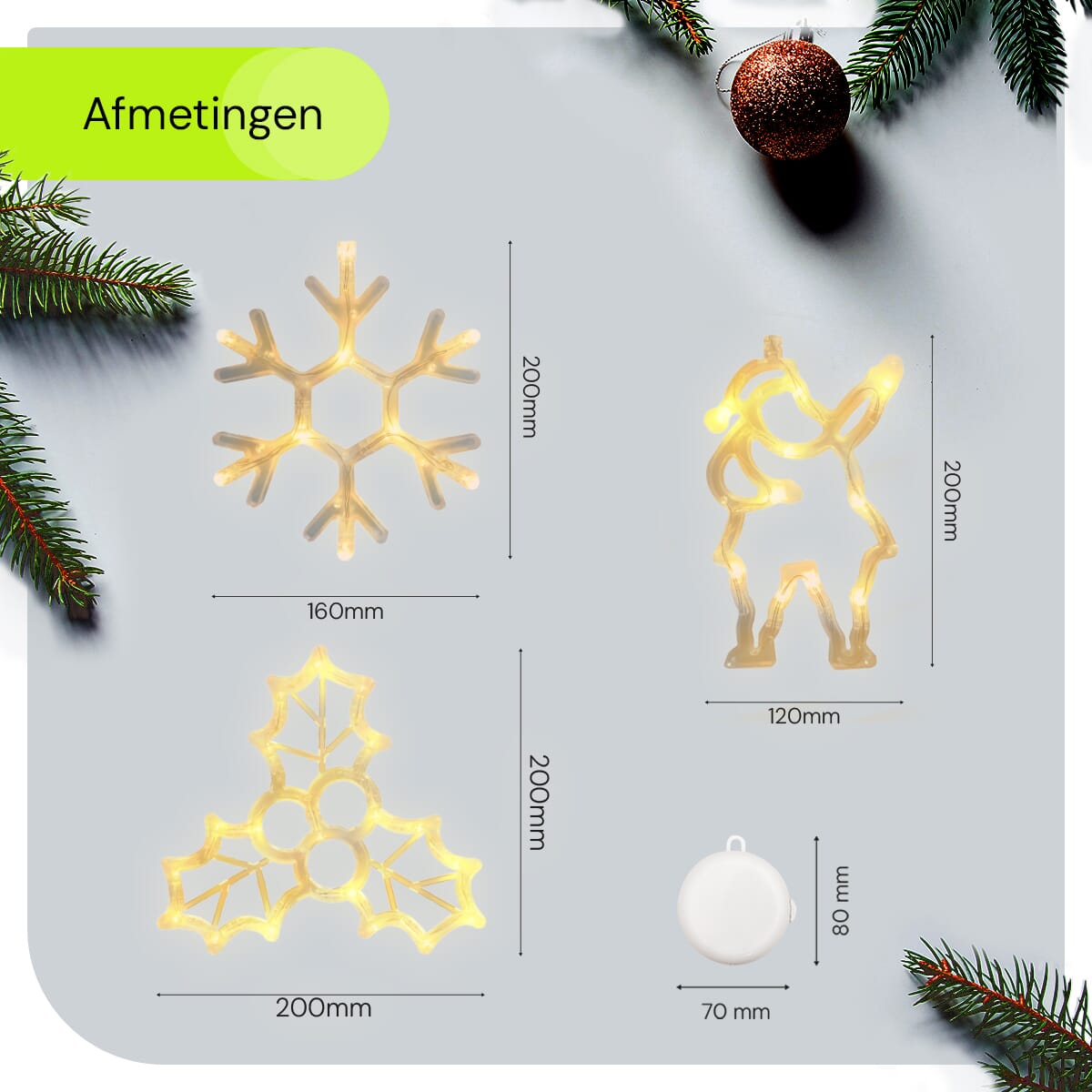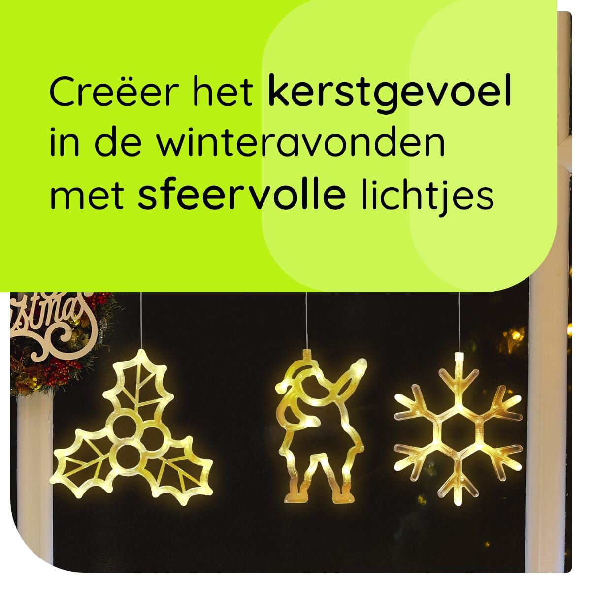 - Unieke ontwerpen: De Mistletoe, Kerstman en Sneeuwvlok voegen elk hun eigen charme toe aan je raam.