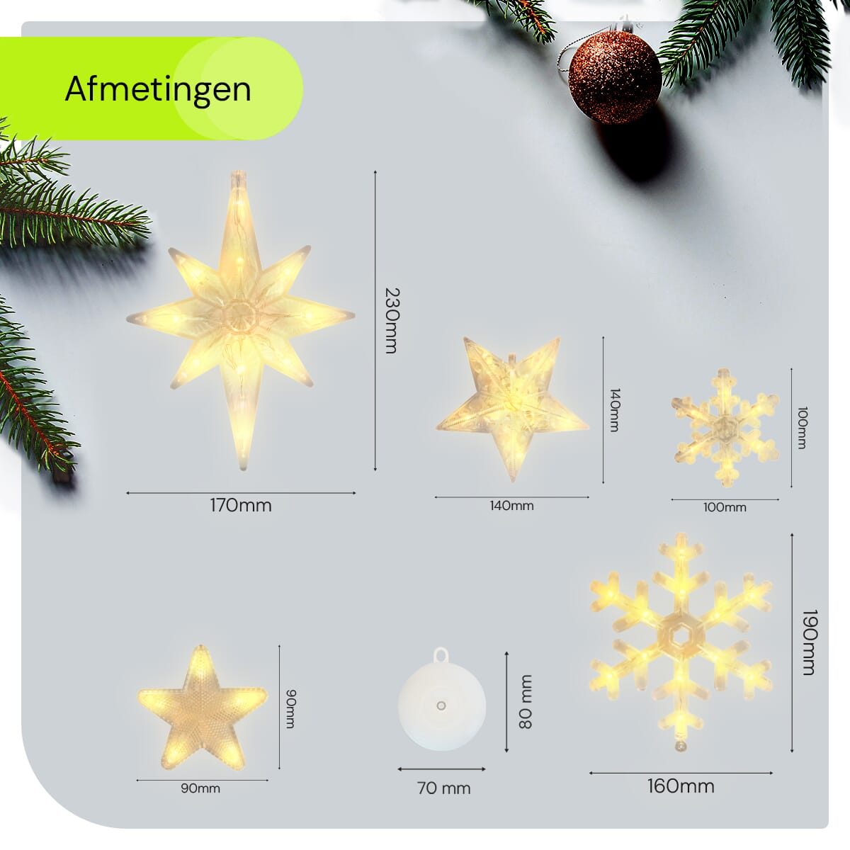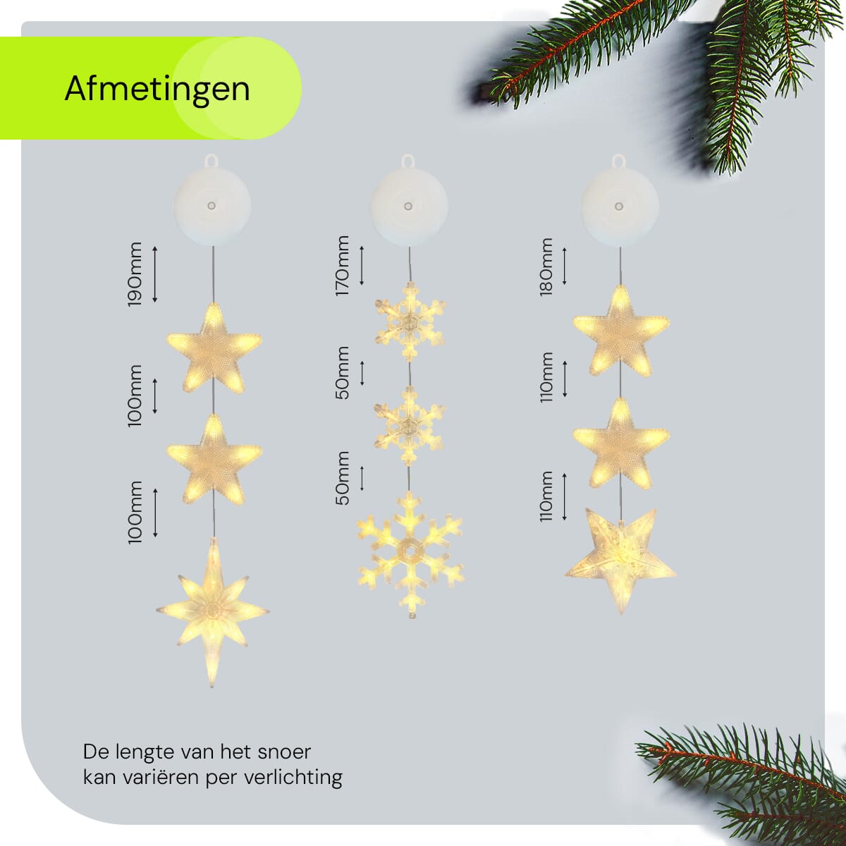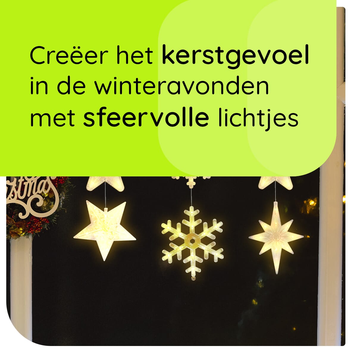 - Eenvoudige bevestiging: Dankzij de handige zuignappen bevestig je de kerstverlichting moeiteloos aan elk raam.