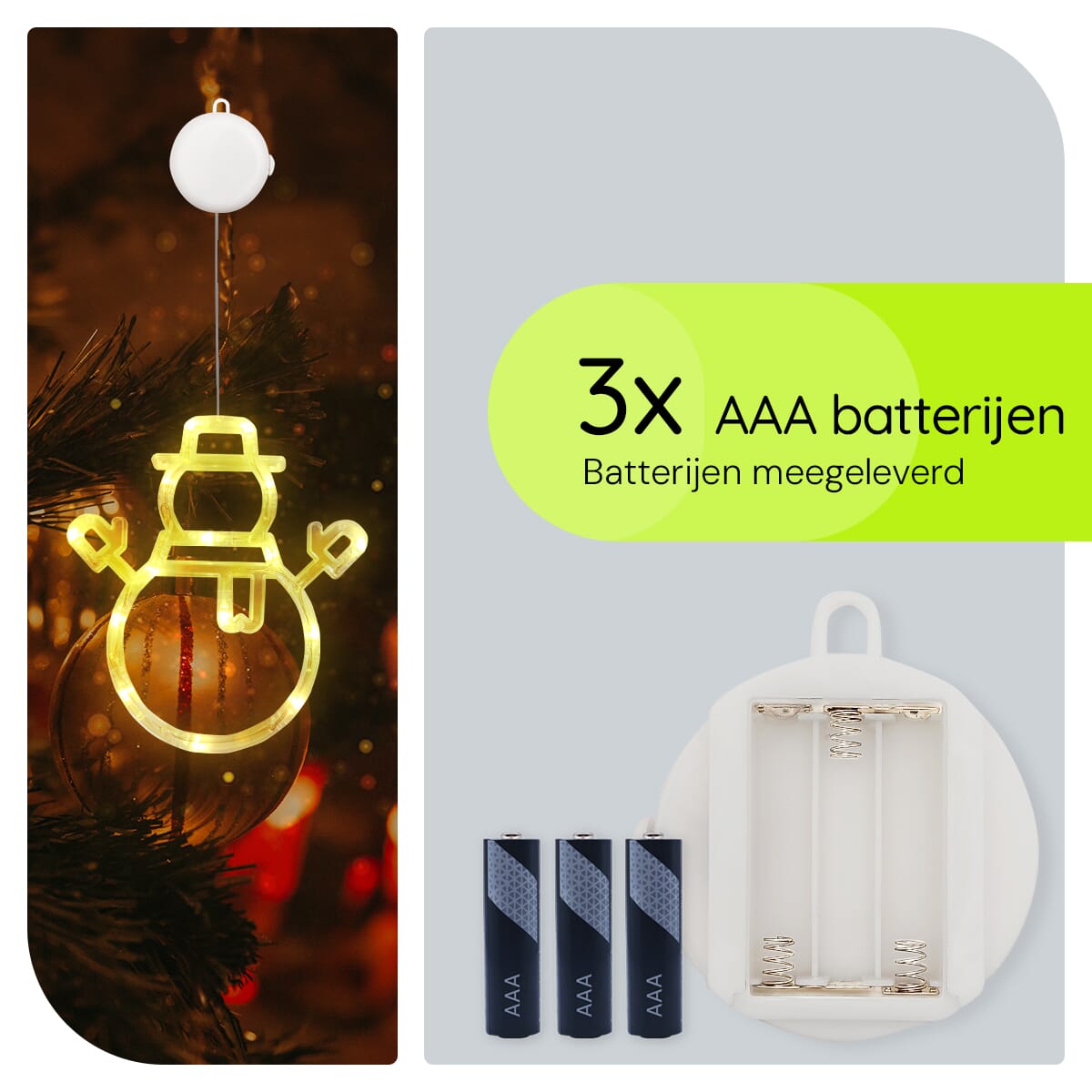 - Inclusief batterijen: Deze raamverlichting wordt geleverd met drie AAA-batterijen, zodat je direct kunt genieten van de sfeervolle kerstverlichting.