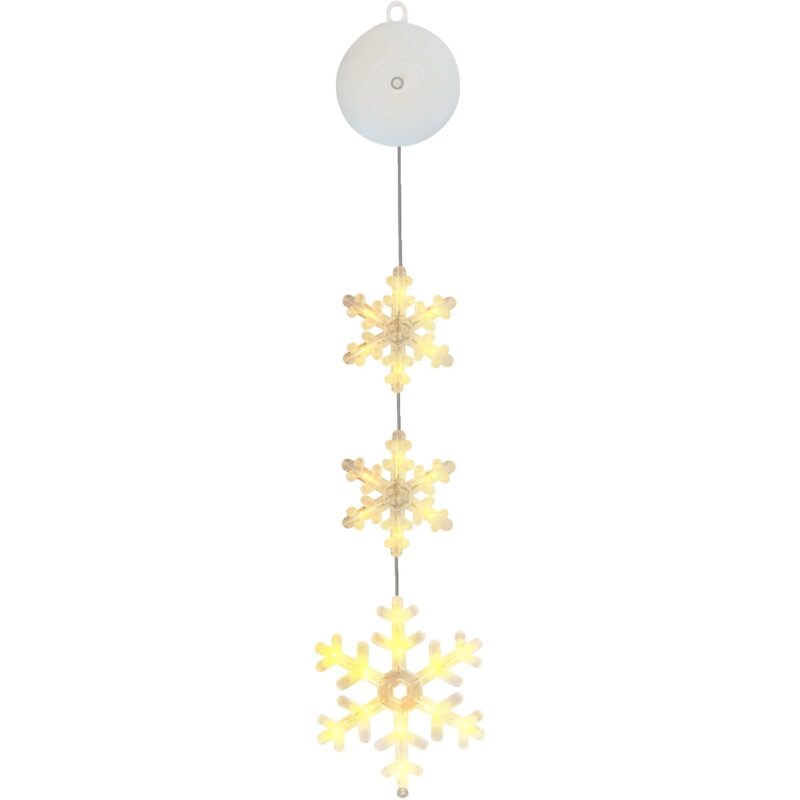 Breng de magie van de winter naar binnen met onze betoverende kerstverlichting voor het raam. Deze stijlvolle kerstversiering bestaat uit drie gracieuze sneeuwvlokken die onder elkaar hangen. Met een warme witte gloed van 2700K, creëert deze verlichting een gezellige en feestelijke sfeer in je huis. Of je nu een gezellig avondje met familie plant of je huis wil laten stralen tijdens de feestdagen, deze kerstdecoratie voor binnen is een absolute must-have.