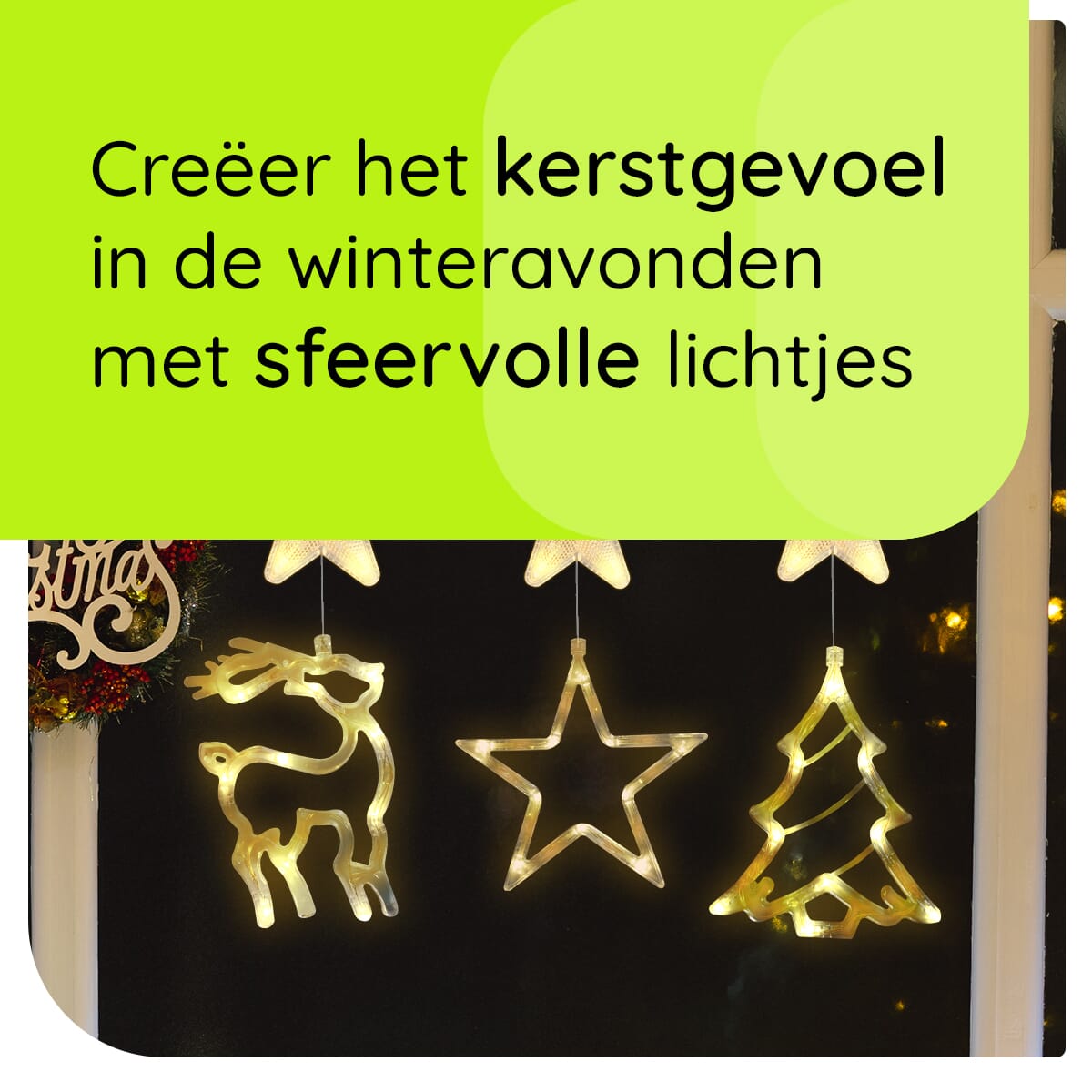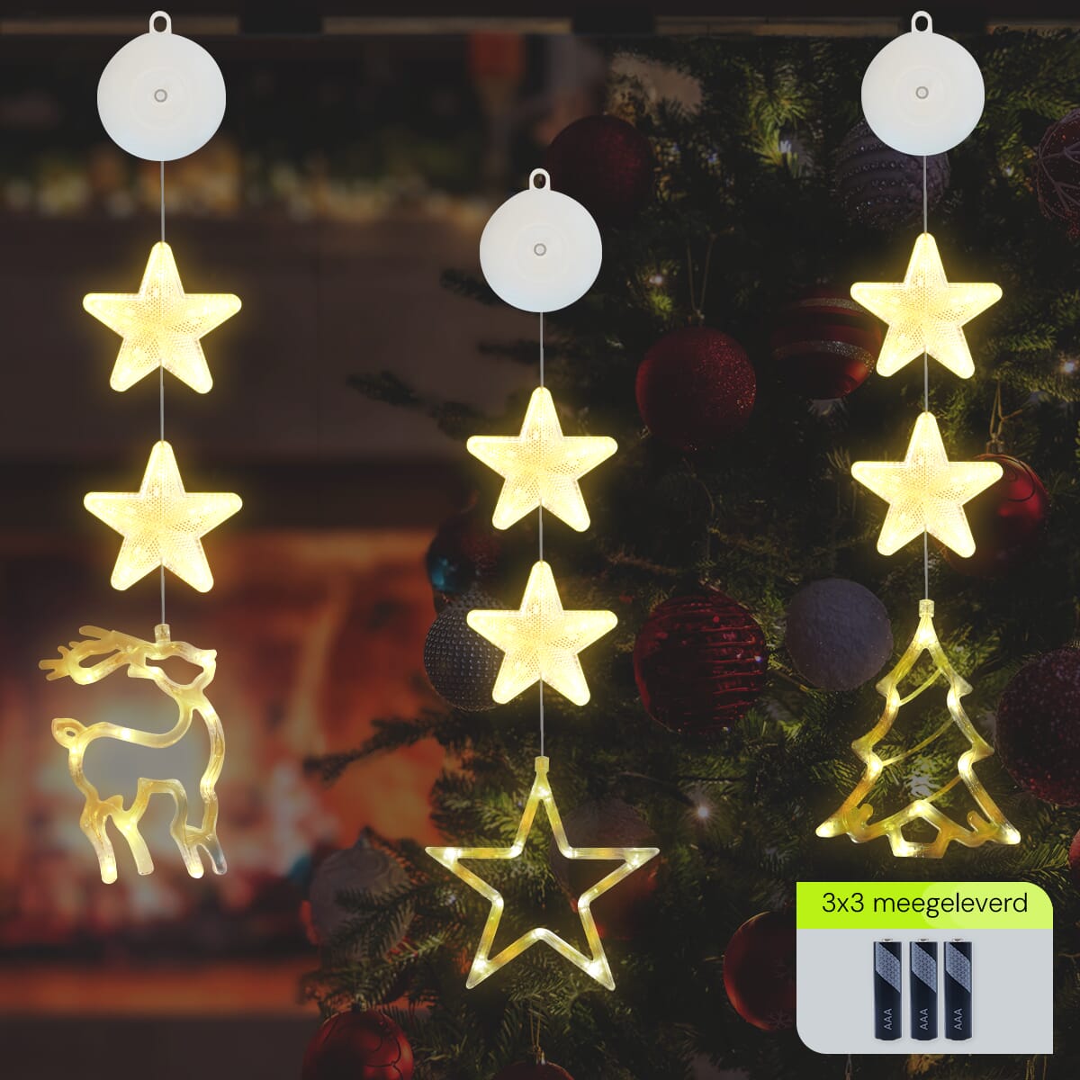 Kerstverlichting set voor het raam met ster, kerstboom en rendier