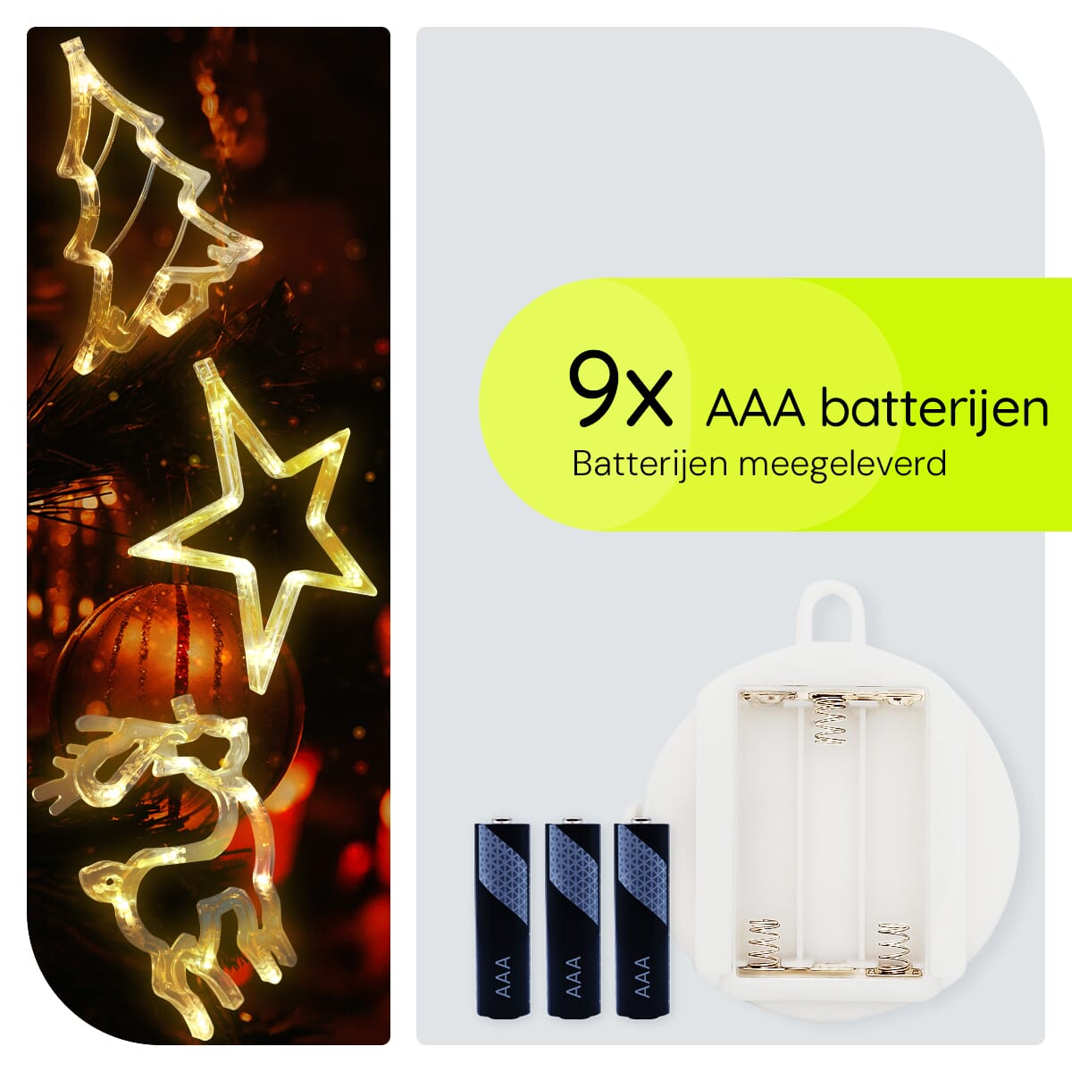 - Eenvoudige bevestiging: Dankzij de handige zuignappen bevestig je de kerstverlichting moeiteloos aan elk raam.