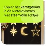 - Eenvoudige bevestiging: Dankzij de handige zuignappen bevestig je de kerstverlichting moeiteloos aan elk raam.