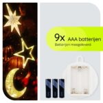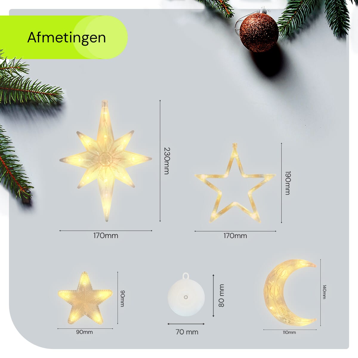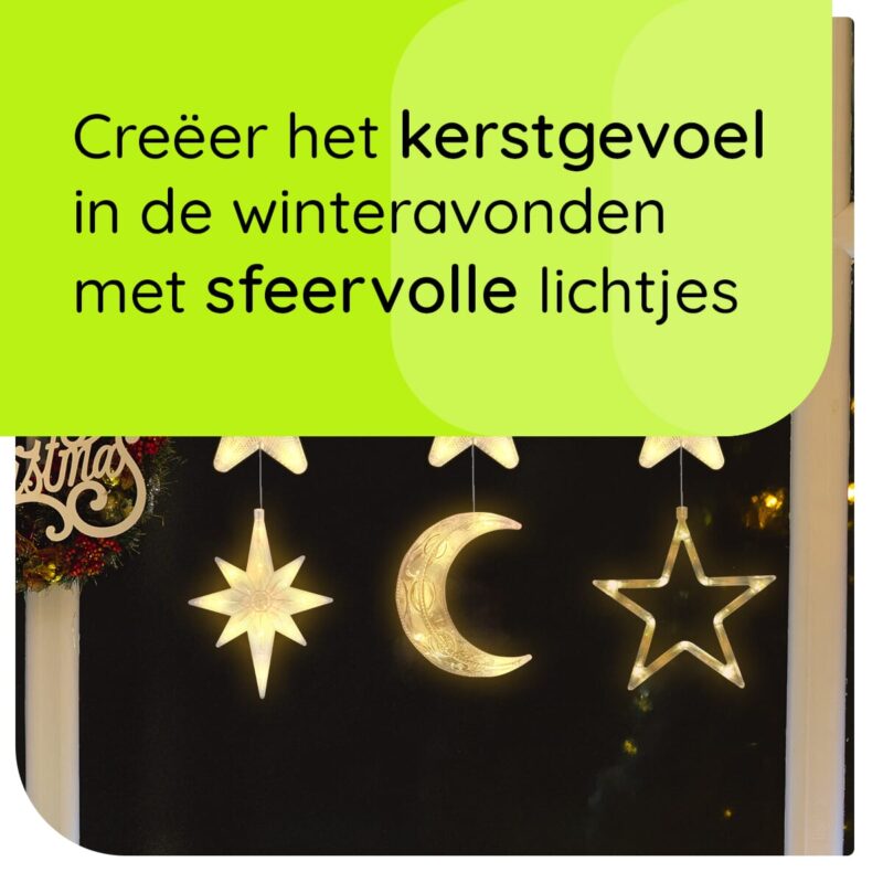 Kerstverlichting set voor het raam met ster, maan en noorderster