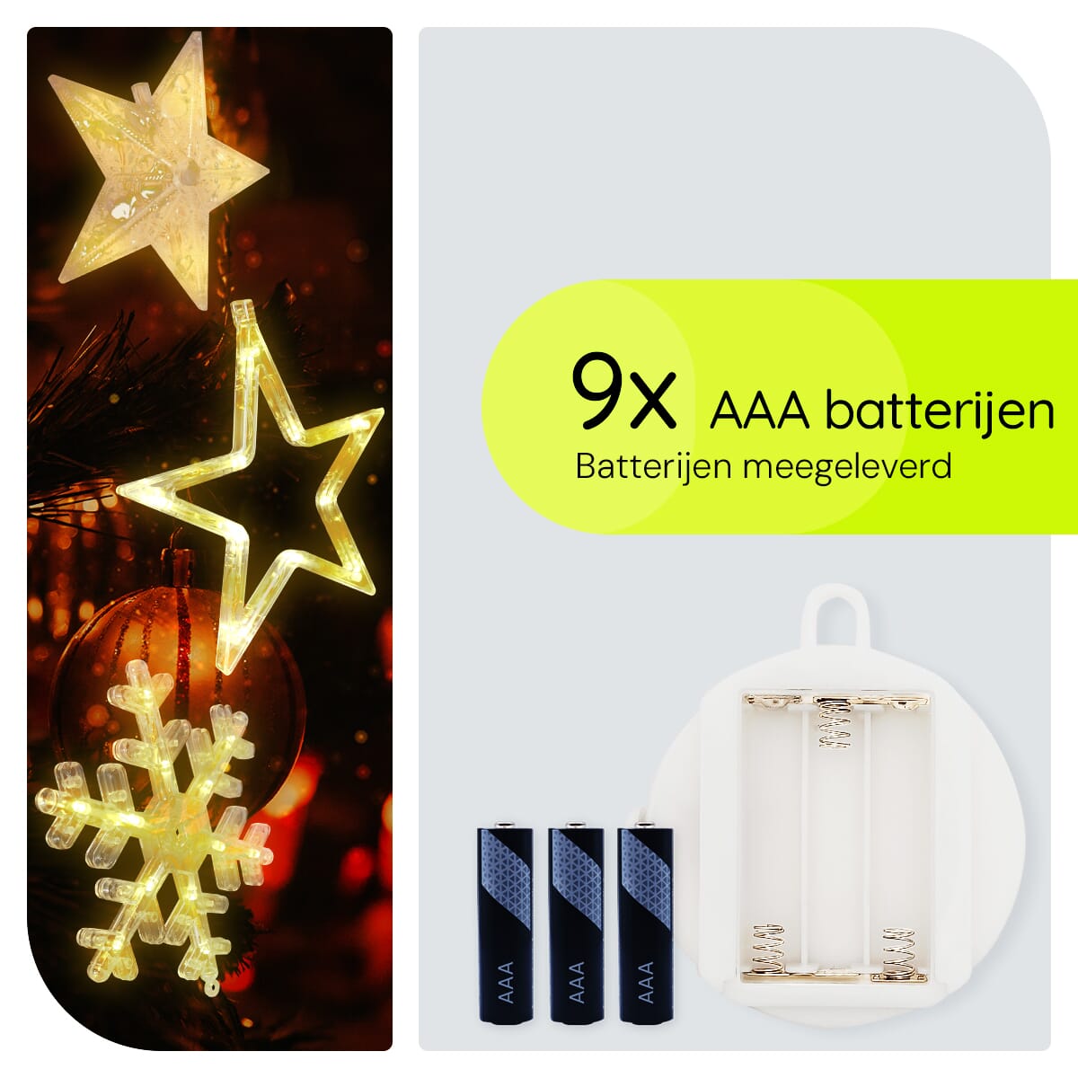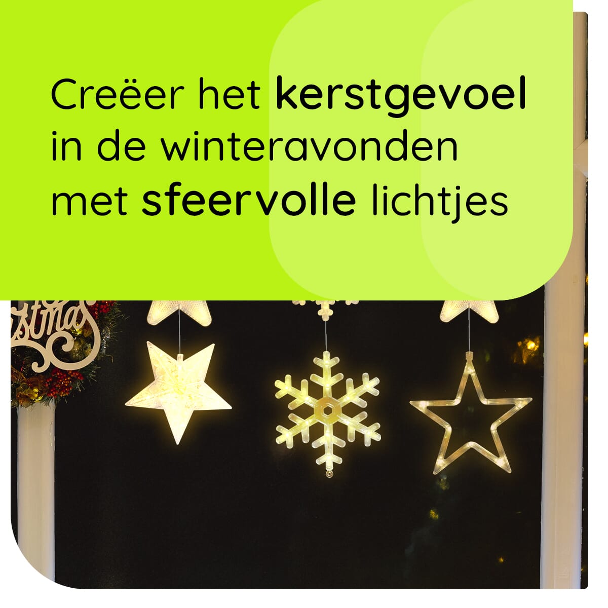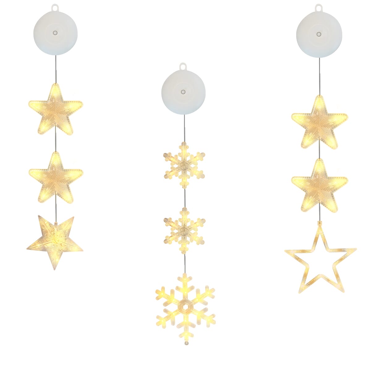 Kerstverlichting set voor het raam met ster, sneeuwvlok en ster