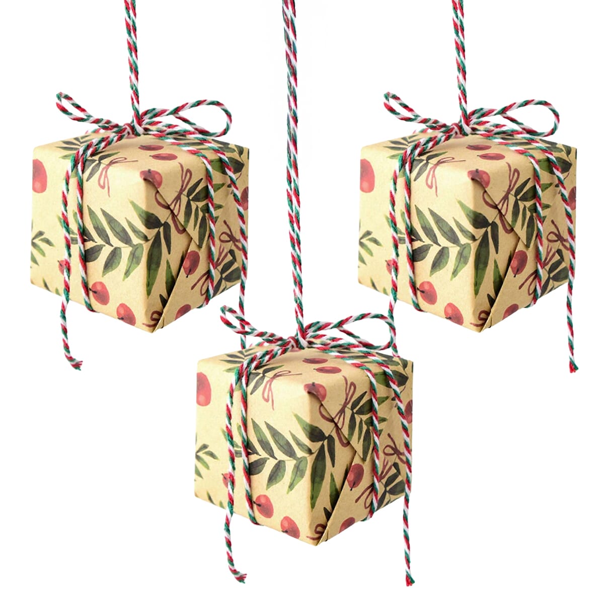 De kersthanger set van 3 bestaat uit vrolijke hangdecoraties in de vorm van cadeautjes, gemaakt van papier en foam. Deze decoraties zijn ideaal voor het versieren van de kerstboom of het raam, en voegen een speelse en feestelijke sfeer toe aan je interieur tijdens de feestdagen. Met een afmeting van 6×6cm zijn ze subtiel maar opvallend genoeg om een gezellige uitstraling te creëren.