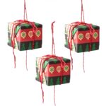 Kersthanger set van 3 – cadeautjes van papier & foam – 6×6cm – vrolijke hangdecoratie voor kerstboom of raam