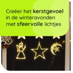 Breng de magie van de feestdagen naar je huis met deze betoverende set kerstverlichting. Deze unieke set van drie figuren – een engel, een halve maan en een ster – zorgt voor een warme en feestelijke sfeer in elke kamer. Perfect voor wie op zoek is naar prachtige kerstdecoratie voor binnen.